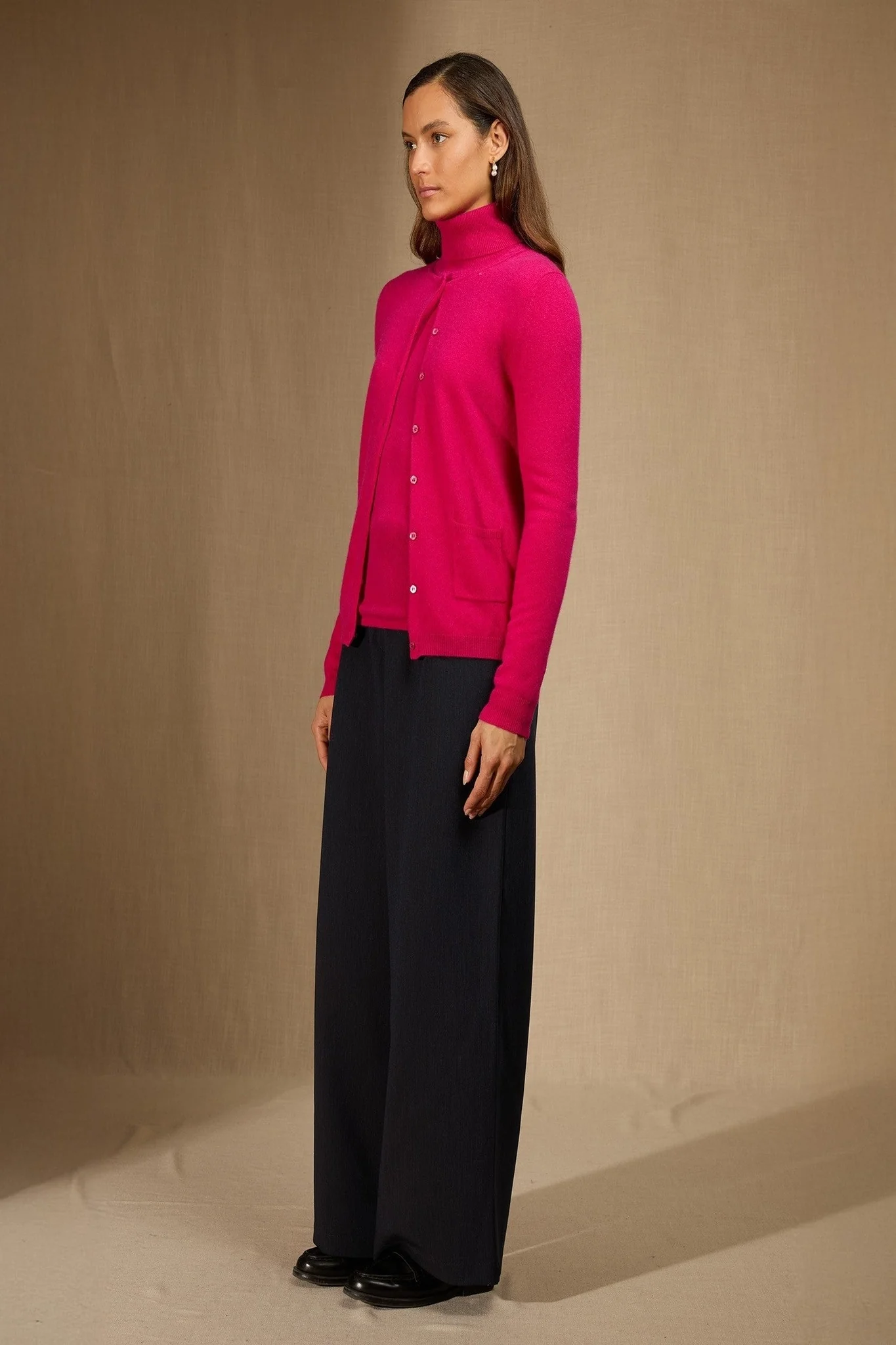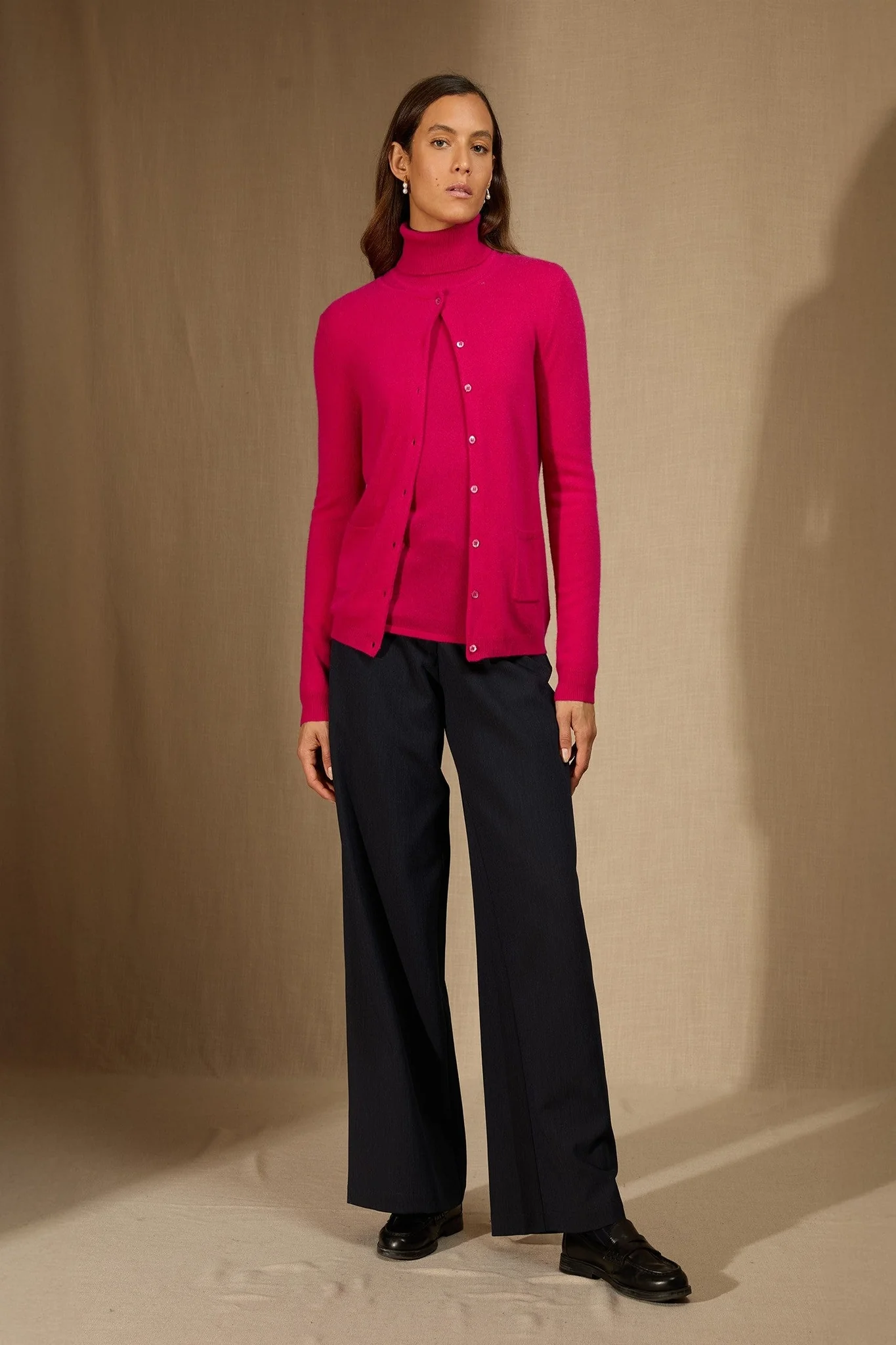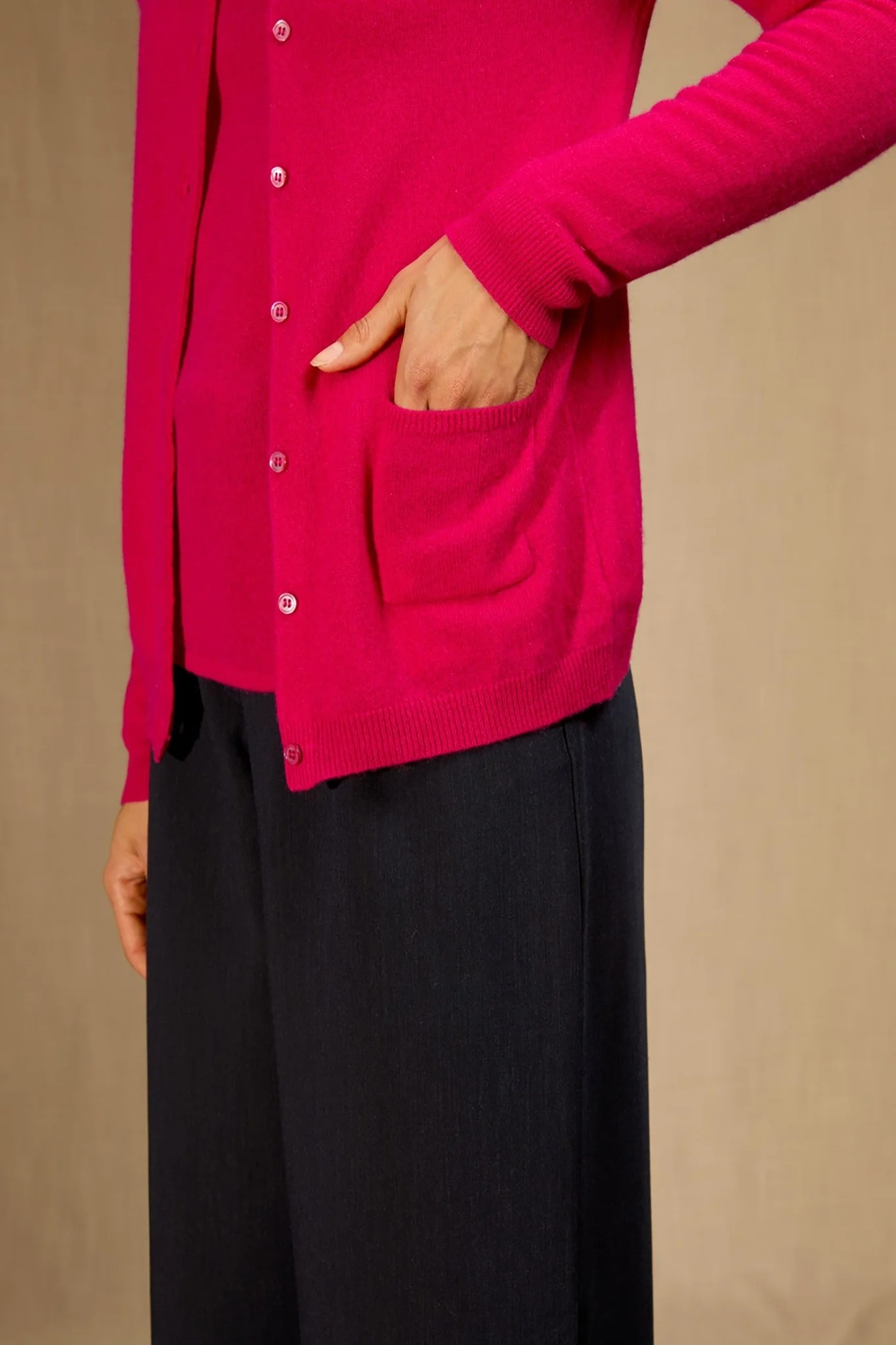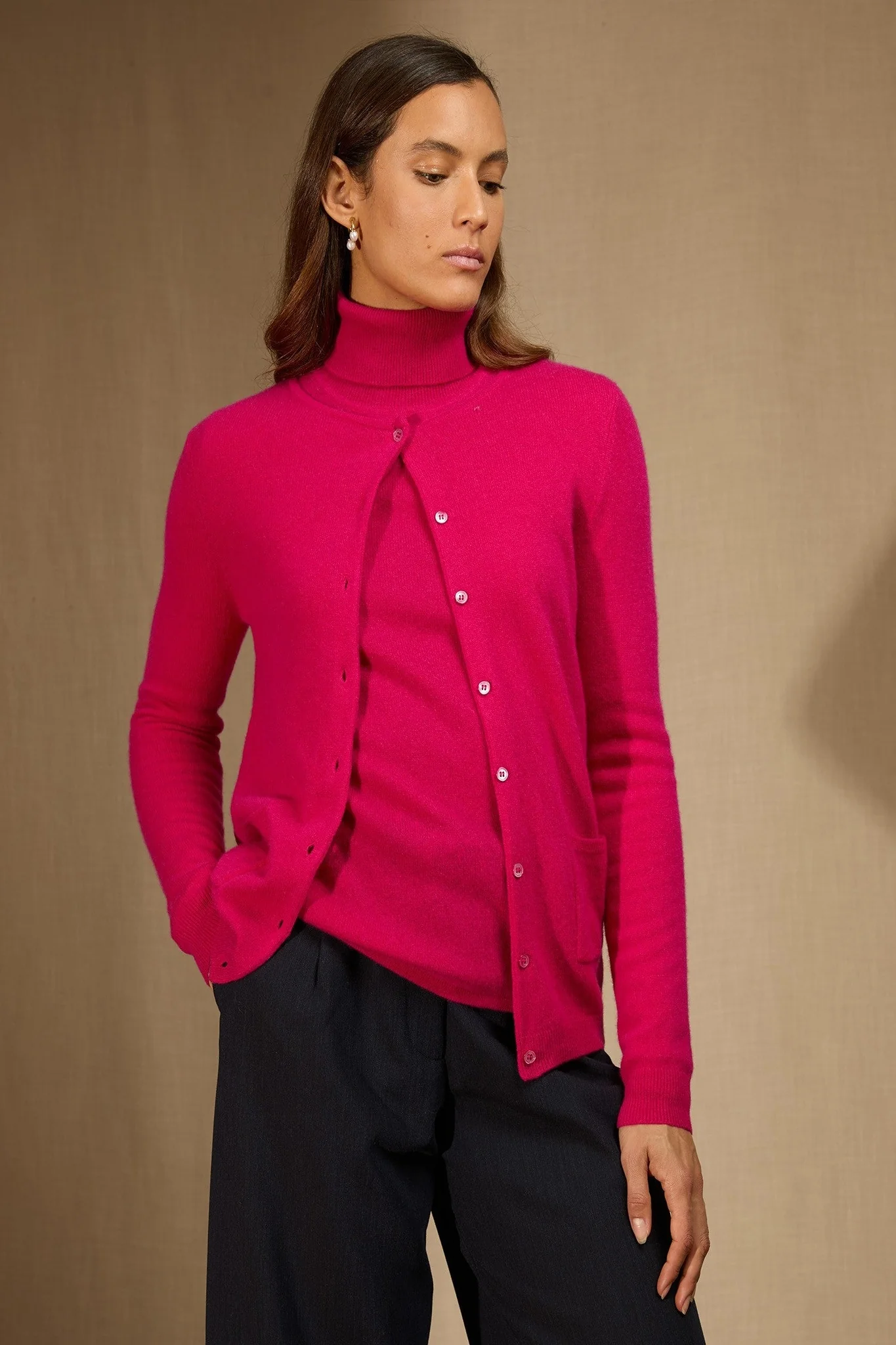 AMY cardigan col rond fuchsia 100% cachemire