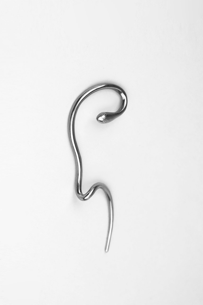 Bague d’oreille femme en forme d’un serpent, en argent.