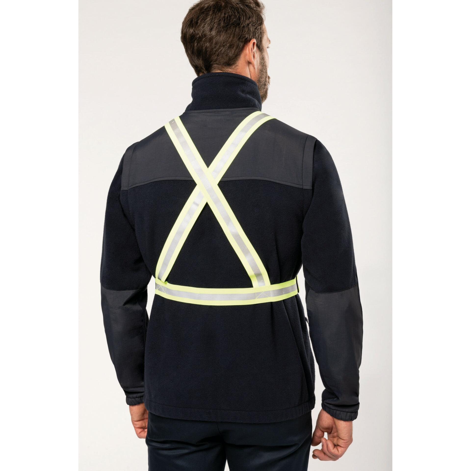 La bande régléchissante réglable est réalisée en matière 3M Scotchlite, garantissant une visibilité optimale. Cette bande régléchissante est conforme à la norme EN13356:2001, classe 2, attestant de son efficacité et de sa fiabilité. De par sa composition en polyester 100%, la bande est à la fois durable et résistante, idéale pour un usage régulier.