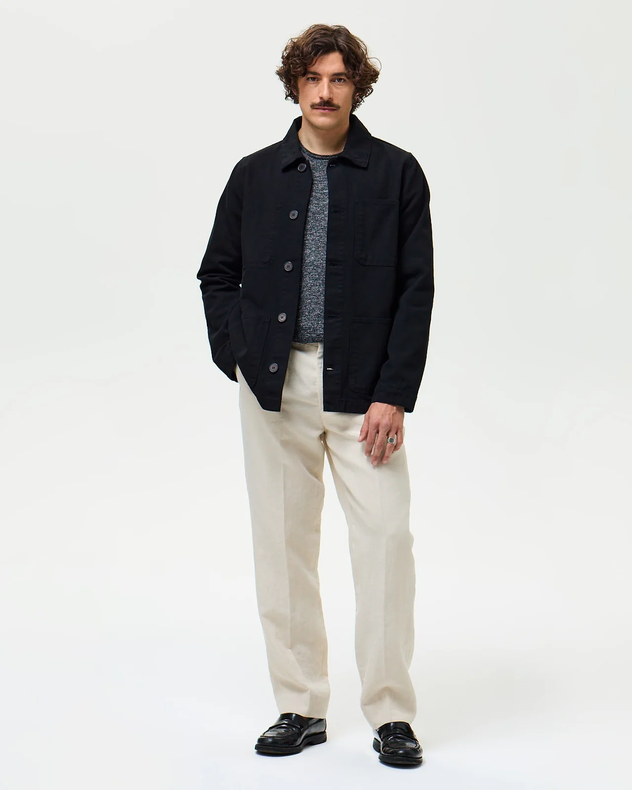 La veste de peintre, notre best-seller absolu depuis plus de 30 ans. Trois décennies que Braque accompagne nos clients avec une formule qui fonctionne parce qu’elle est juste. Son canevas de coton 400 grammes par mètre carré – tissu robuste au tissage serré, offre solidité, tenue et durabilité. Ce grammage permet de la porter toute l’année, ni trop léger ni trop lourd, tout en restant respirant grâce aux fibres naturelles. Ses quatre poches apportent la fonctionnalité maximale propre à la veste de peintre. Confectionnée en Belgique par un tisseur établi depuis 1929, elle bénéficie de presque 100 ans d’expertise dans le canevas de qualité. Ses teintes universelles et intemporelles traversent le temps. Notre pièce signature, l’évidence en veste de peintre.