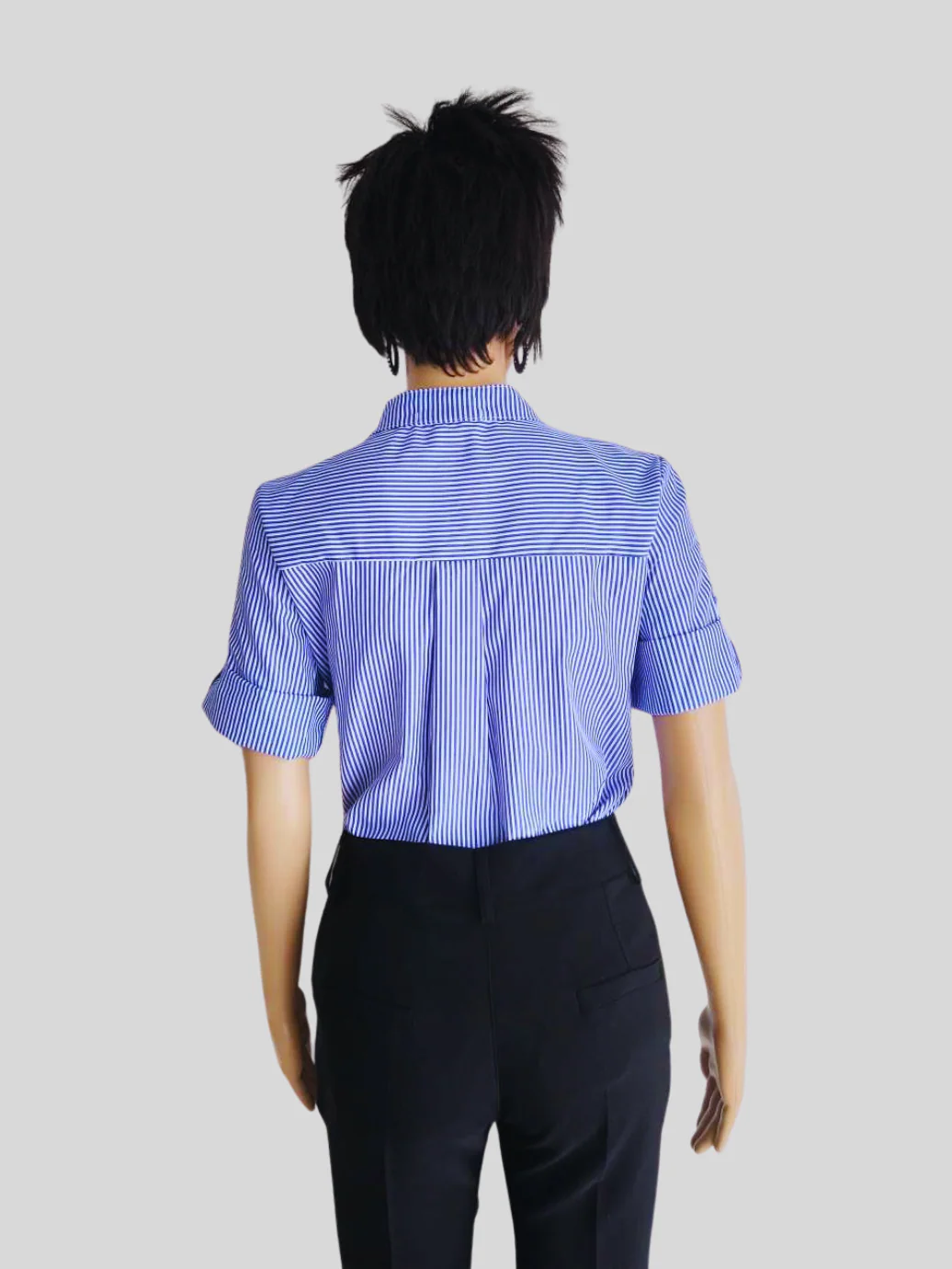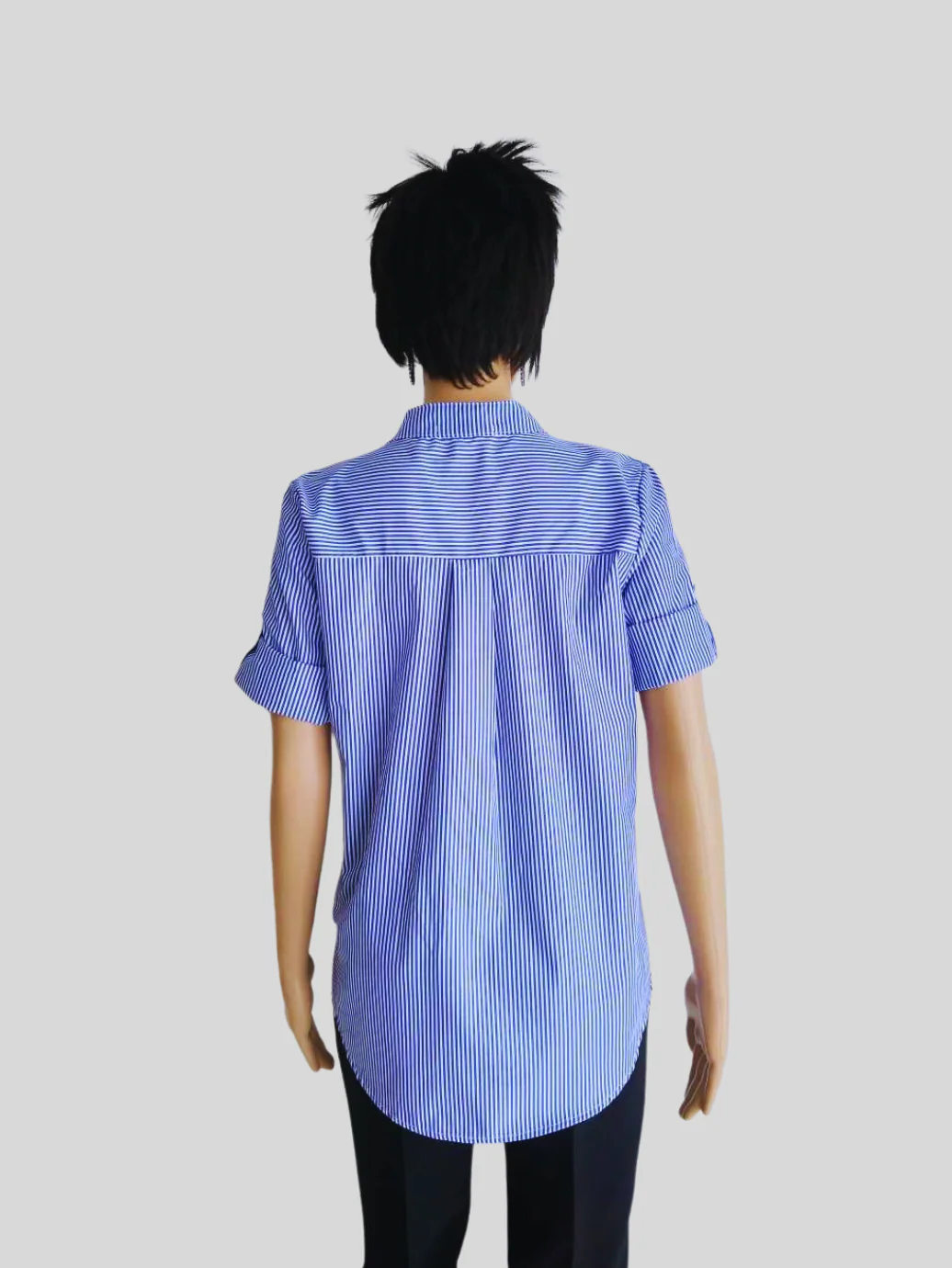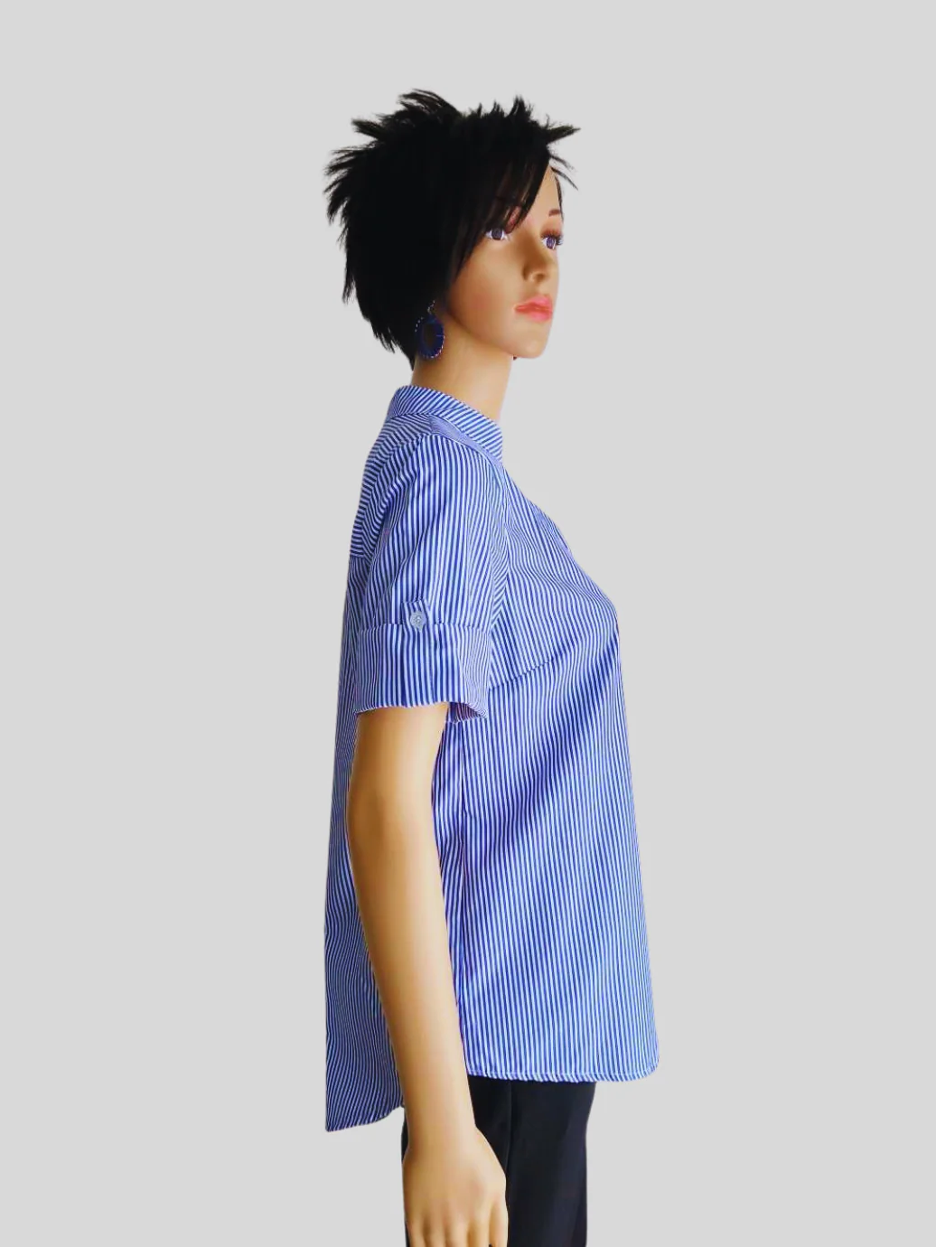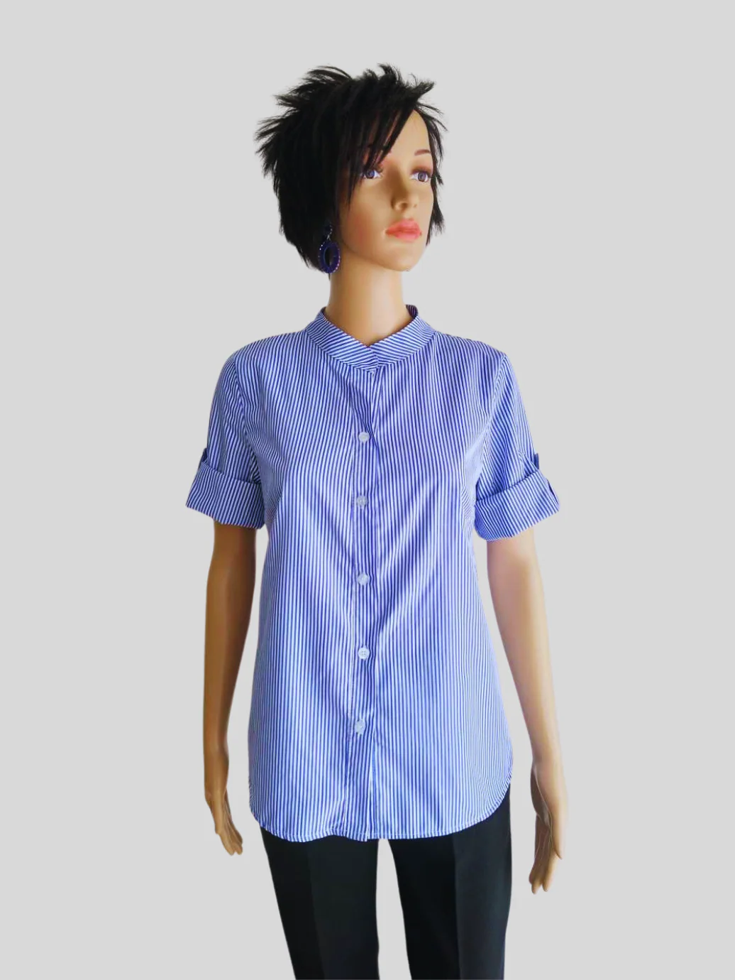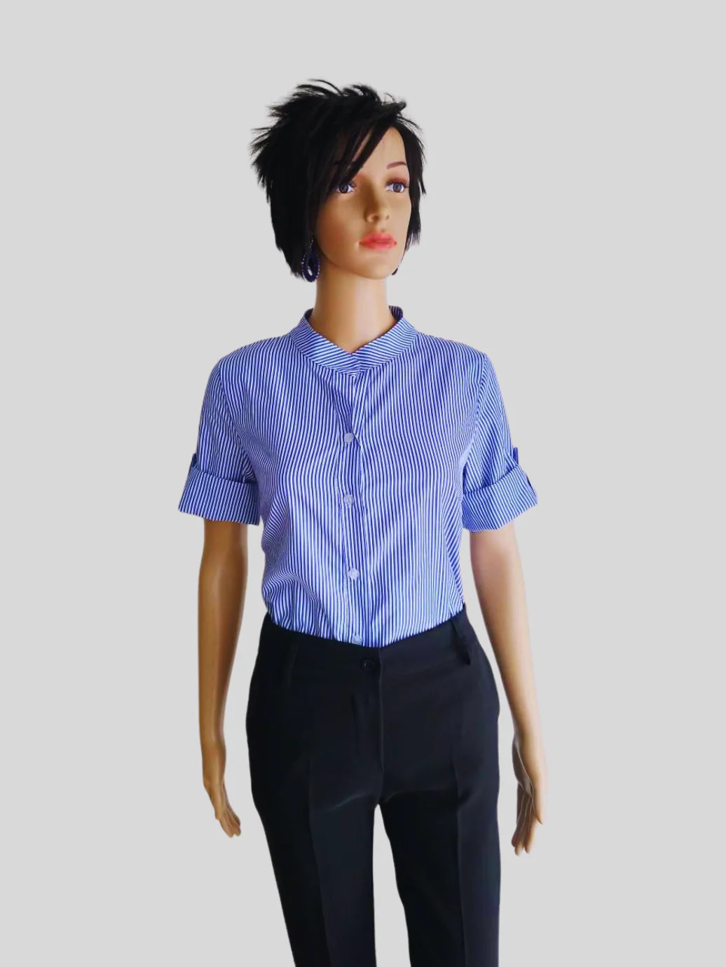 Misez sur notre chemise col mao à rayures, une pièce incontournable pour affirmer votre style. Ses manches 3/4 à revers avec bride apportent une dimension pratique et chic, idéale pour s’adapter à tous vos mouvements. Son col mao structuré confère une allure stylée. Élégante, elle se porte facilement en solo ou superposée pour créer des looks variés selon vos envies.