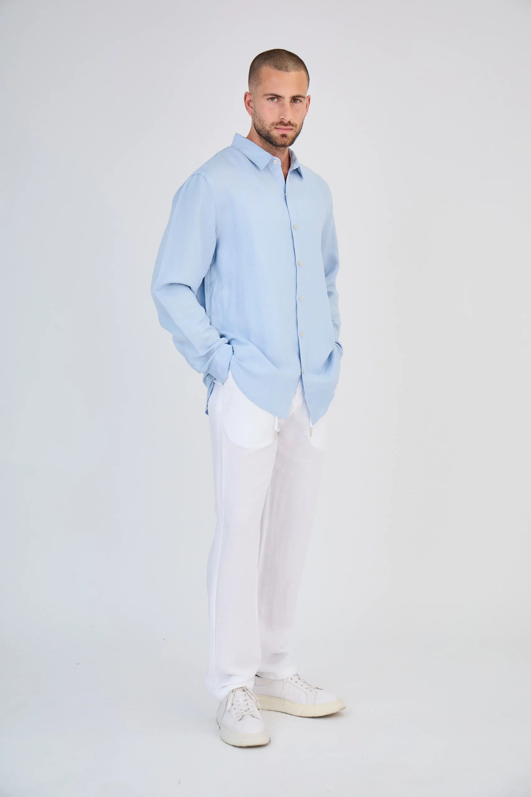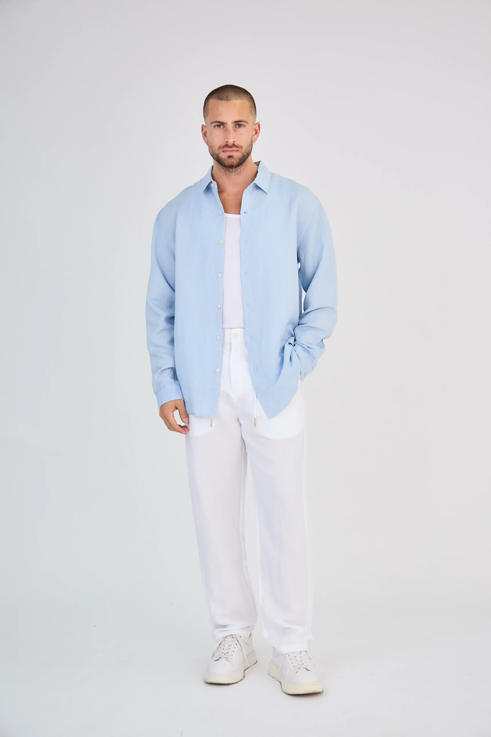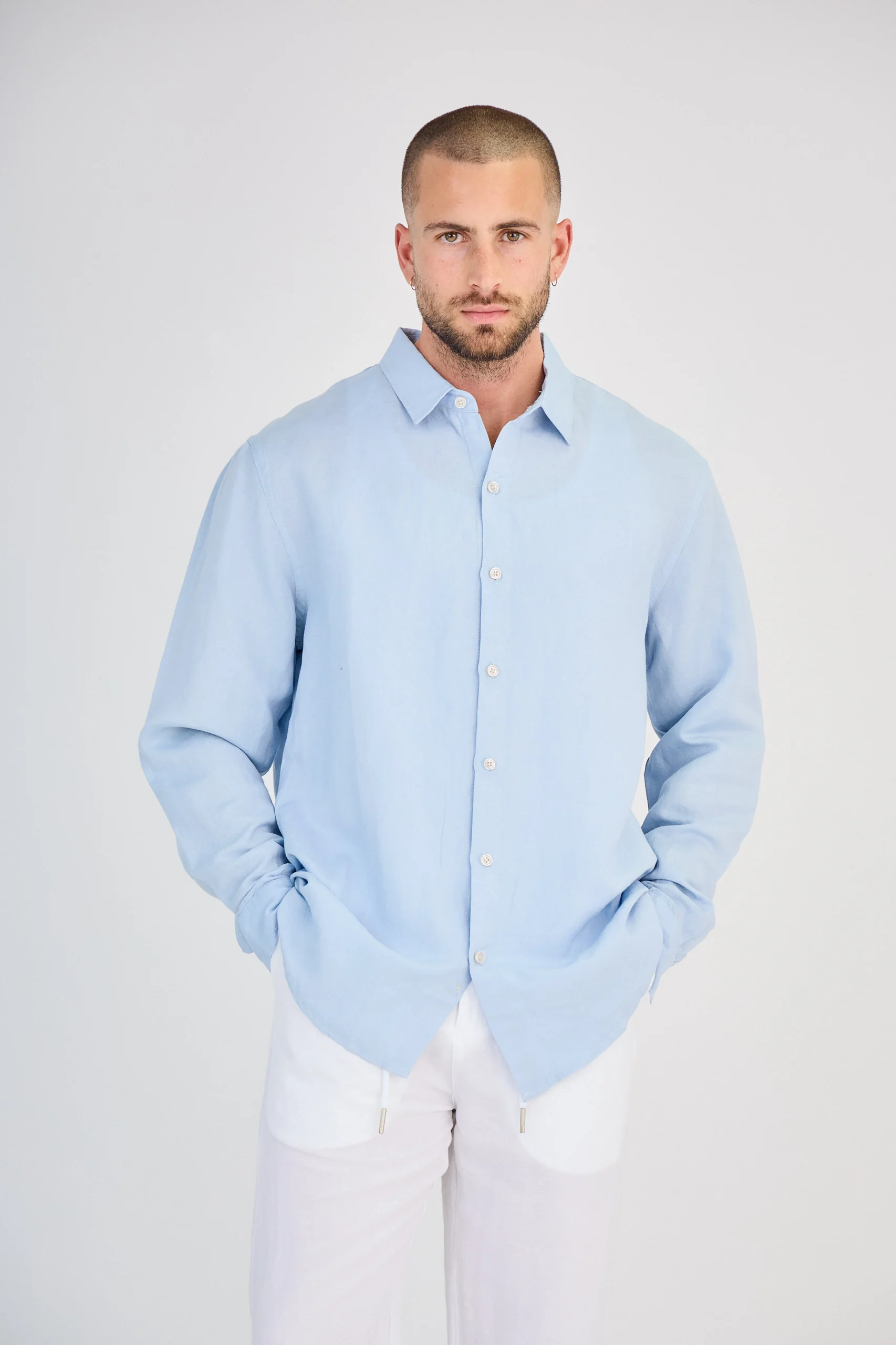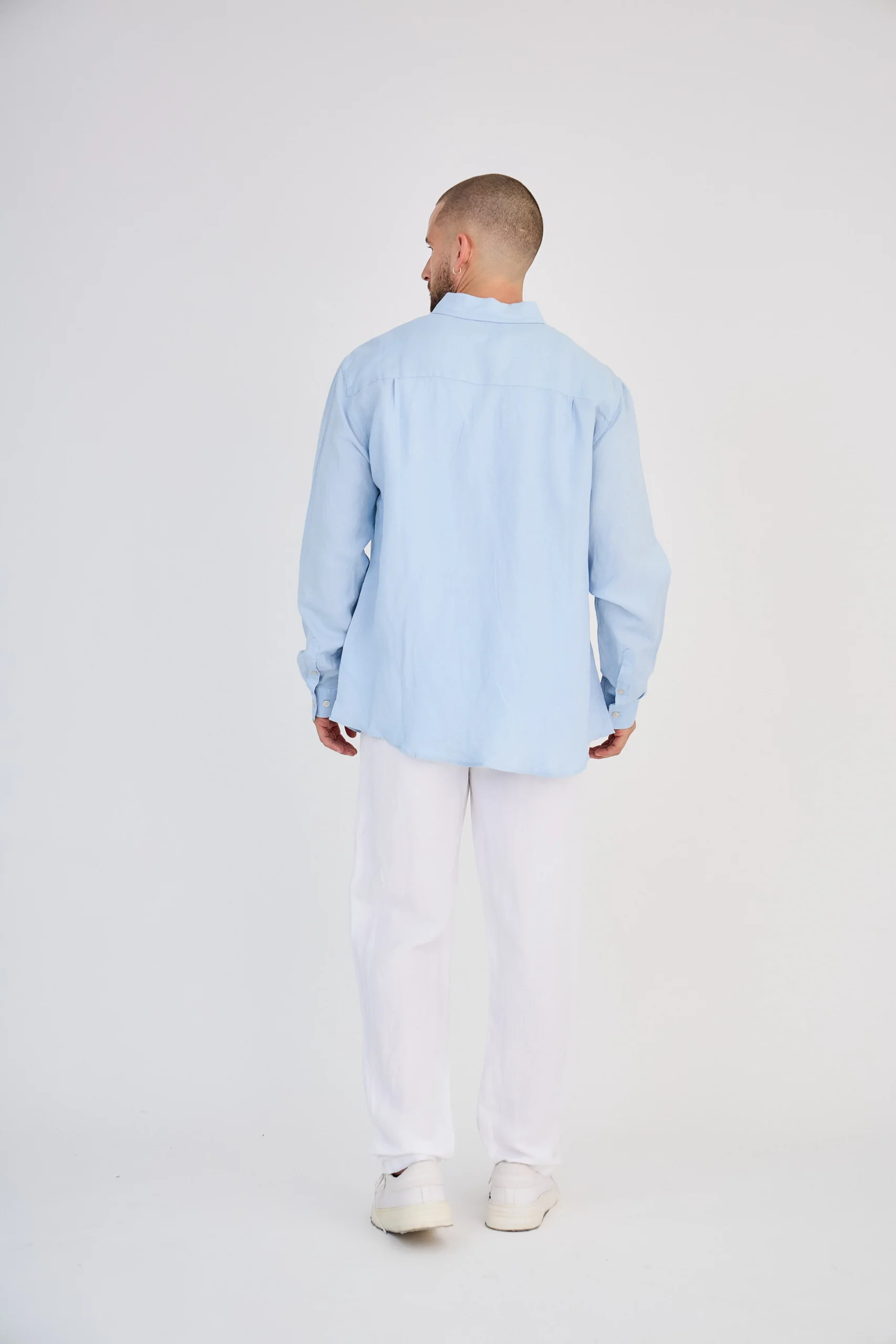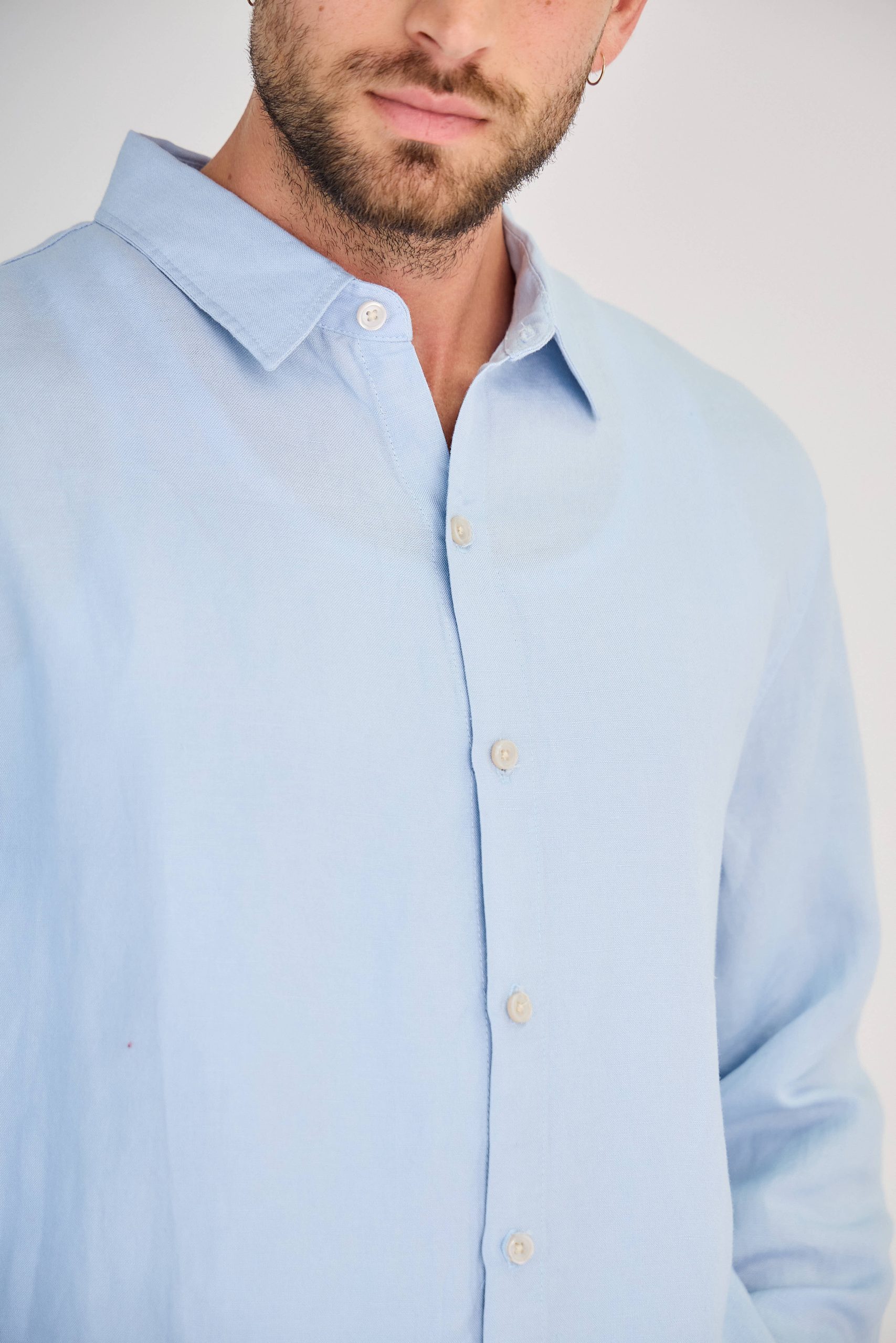 Chemise en Lin Manches Longues Bleu Ciel