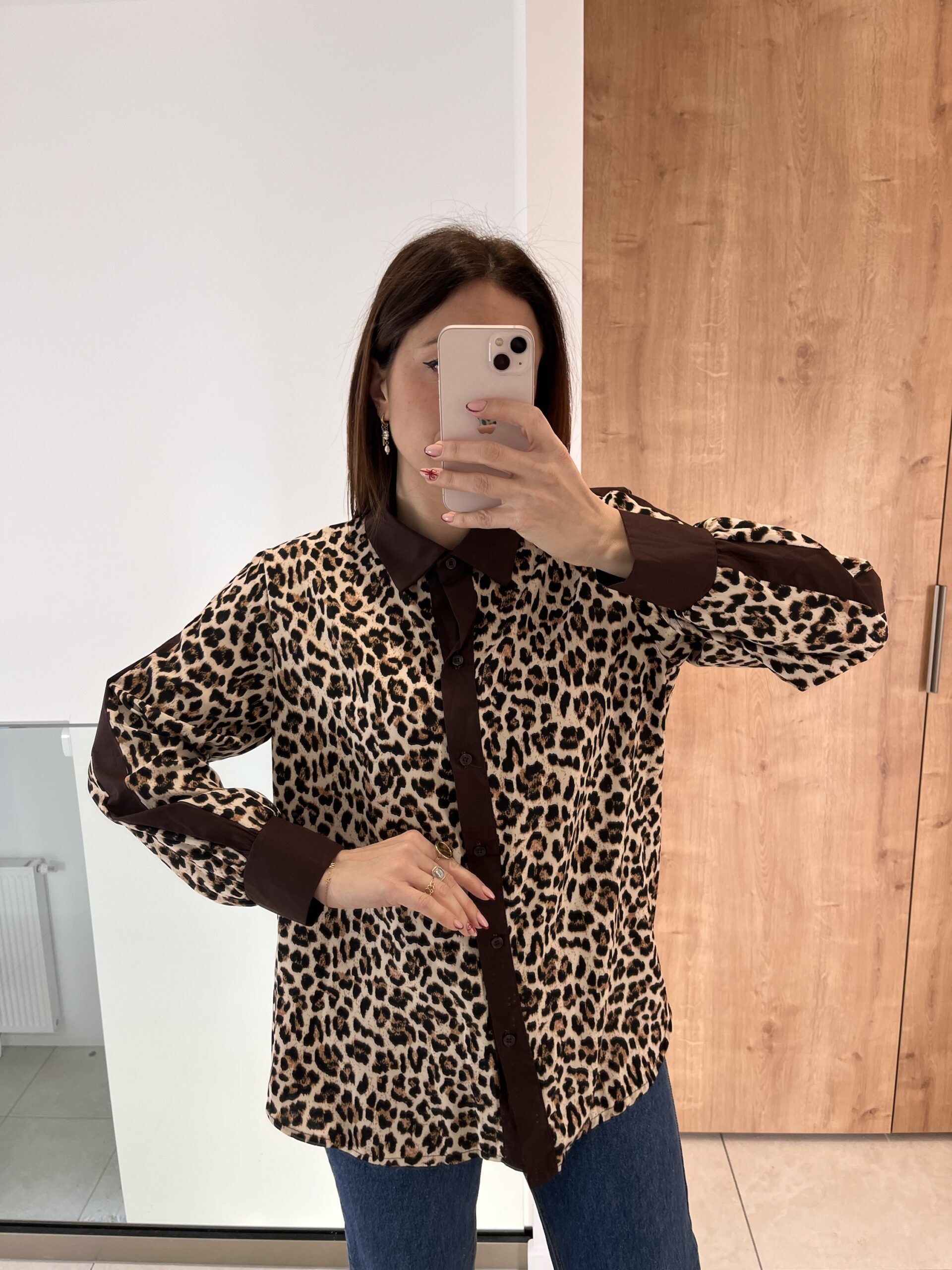 Chemise léopard . Fabriquée en Chine 96% polyester , 4% elasthanne Taille unique. Convient du XS au L. Conseil de lavage : 30 degrés – À la main ou programme doux, pas de sèche linge .
