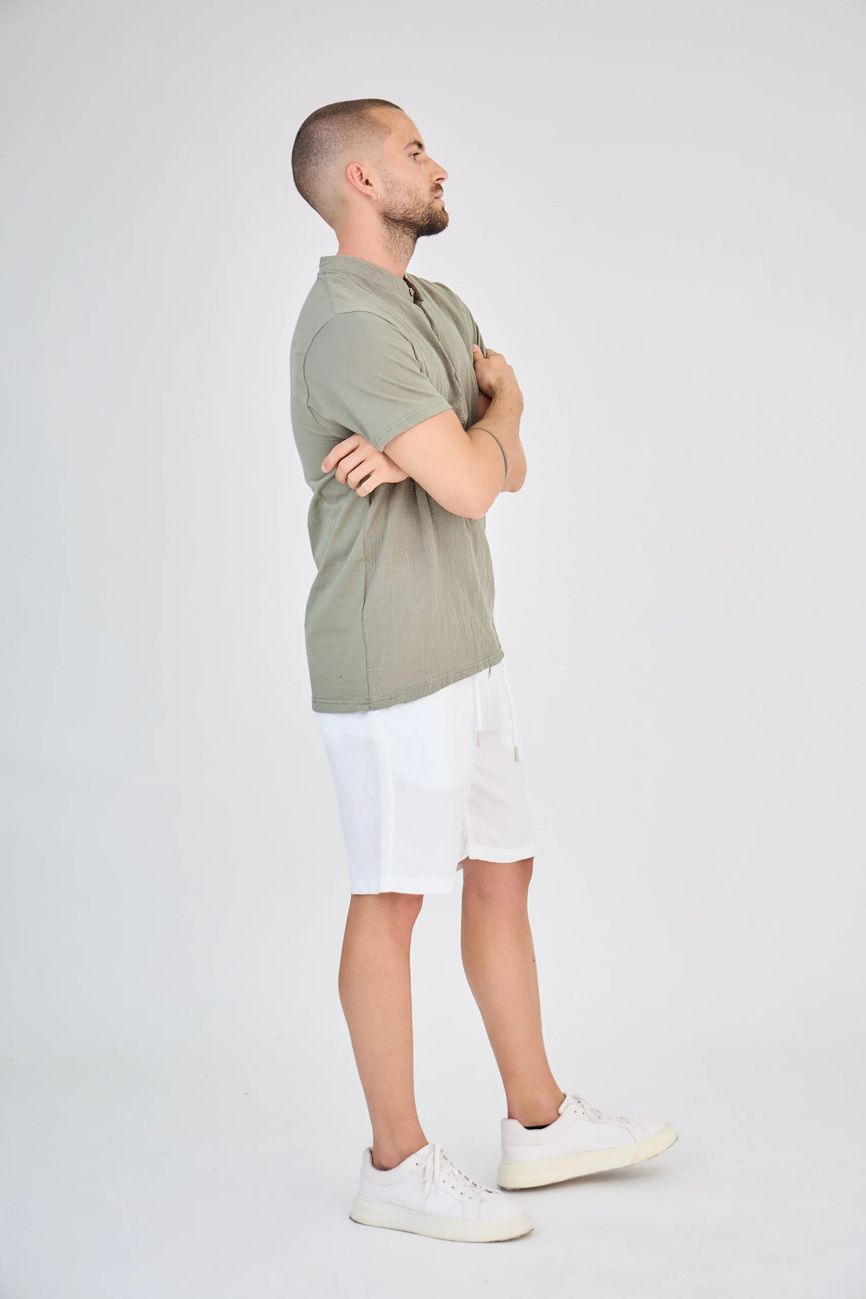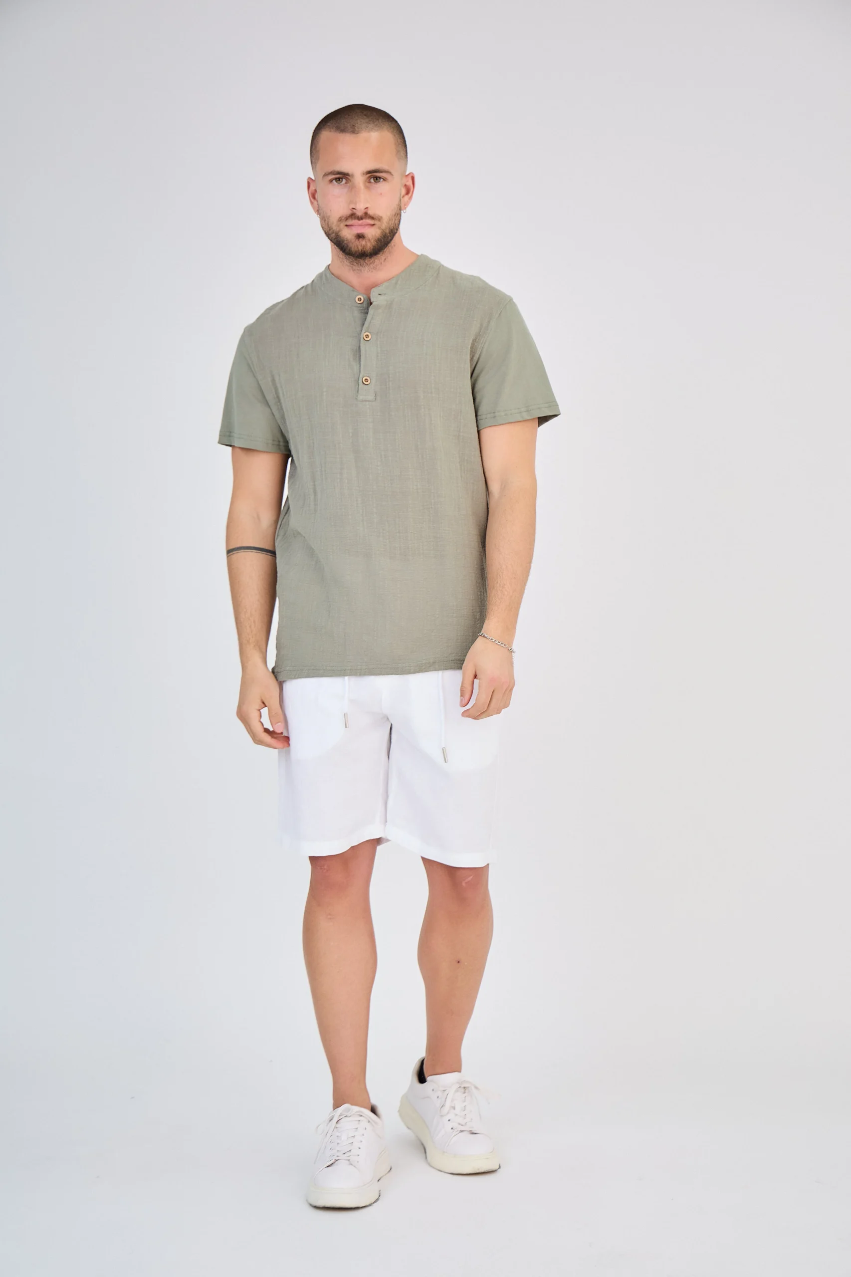 Chemisette à manches courtes, quintessence du vêtement essentiel moderne. Conçu pour offrir tenue structurée et douceur agréable, idéal pour les superpositions ou porté seul. Sa coupe oversize garantit confort et allure décontractée, avec des finitions soignées et intemporelles, parfait pour le streetwear minimaliste.