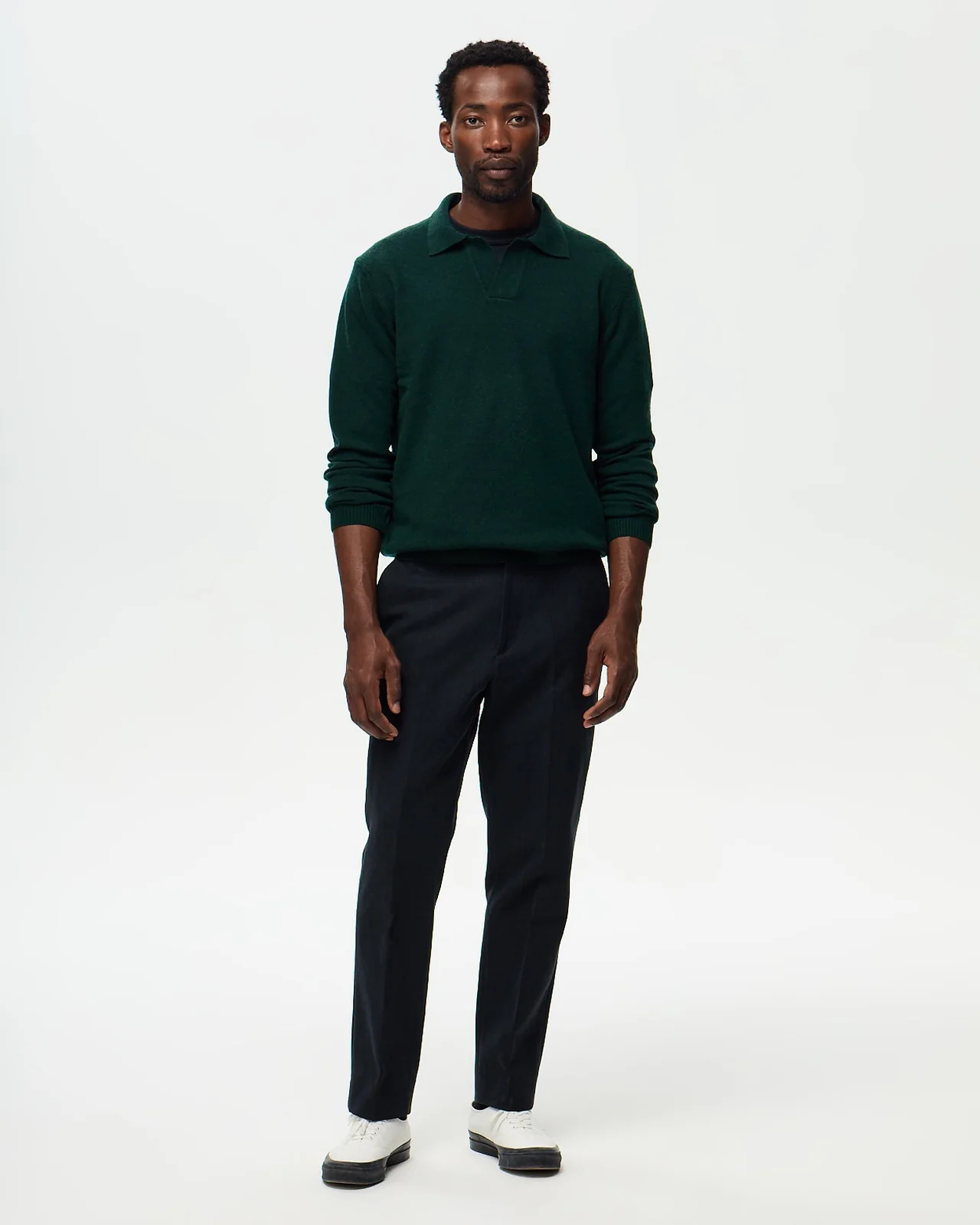Le pantalon tailoring marine, l’élégance moderne au quotidien. Confectionné en tricotine 100% coton portugaise, une toile dense et raffinée au toucher légèrement texturé. Tisseur depuis 1935. Coupe tailoring fuselée pour une silhouette ajustée, structurée à la taille puis légèrement resserrée à la cheville. Plis cassés à l’avant, détail sartorial pour un tombé impeccable. Poches latérales […]