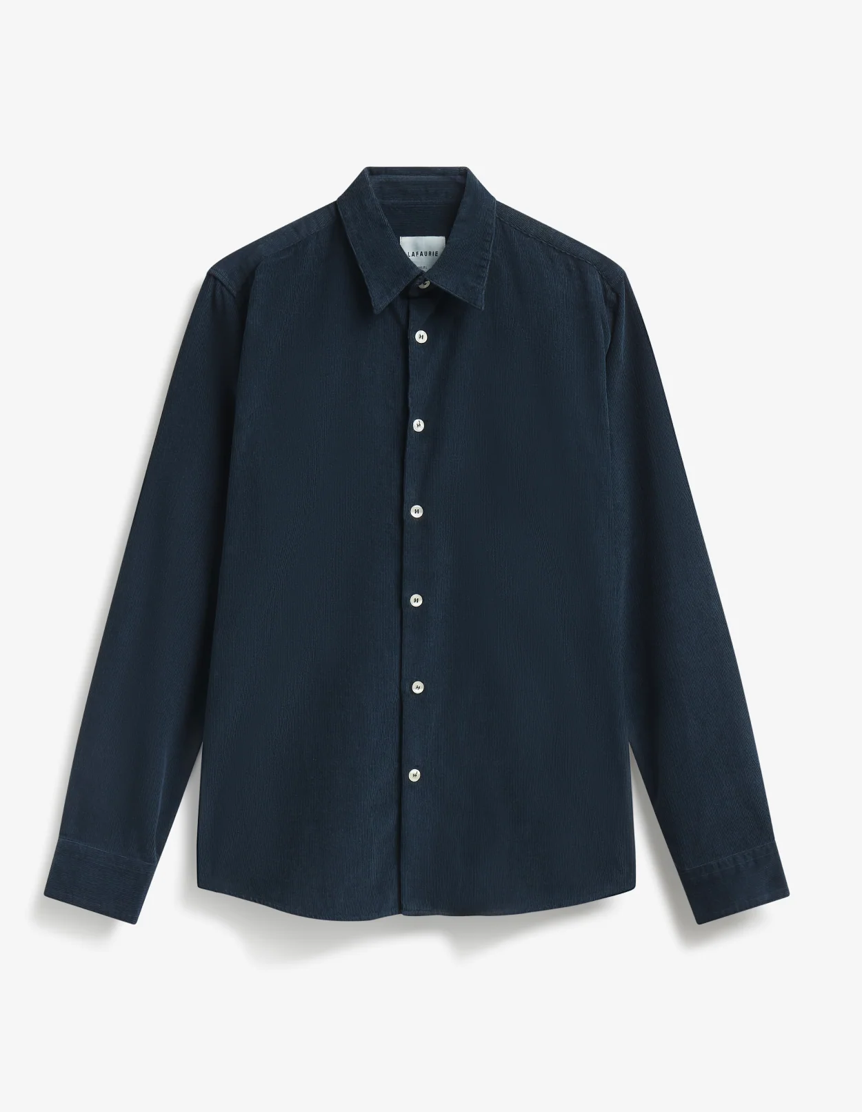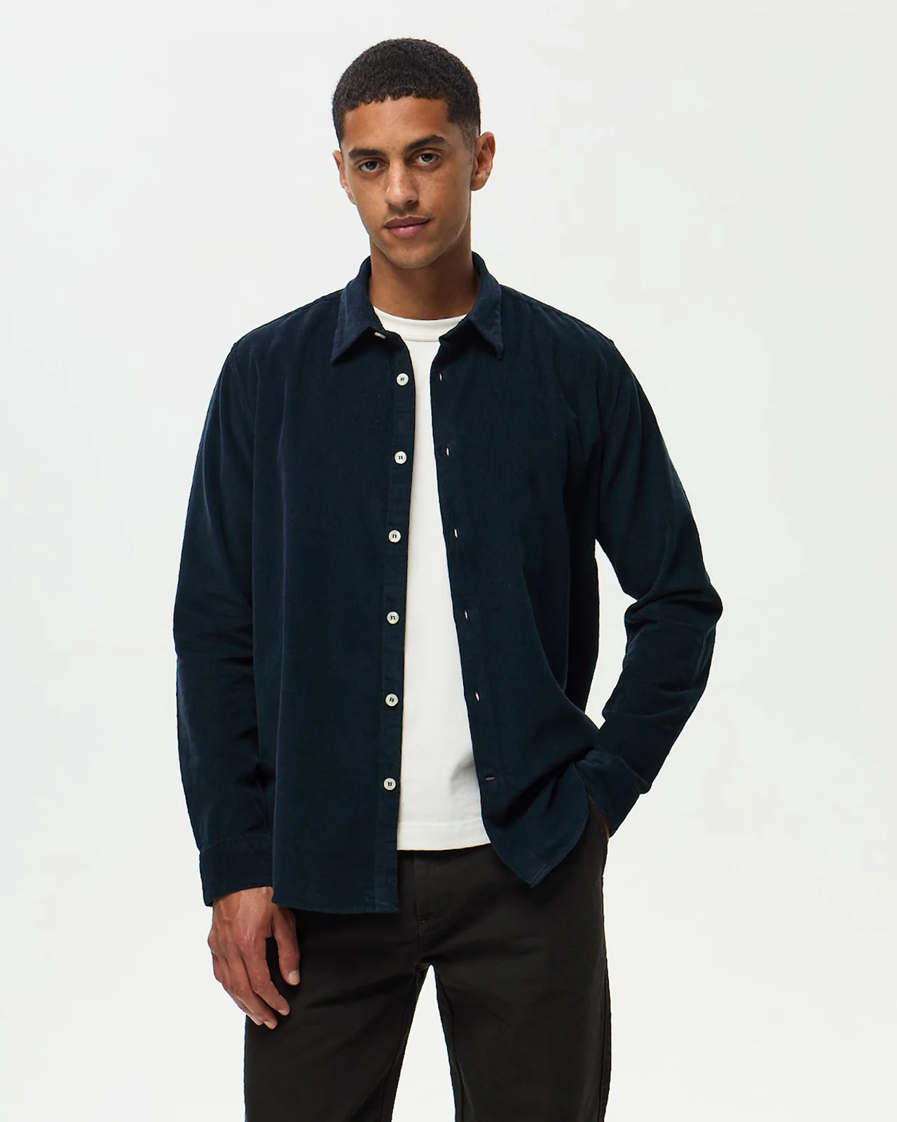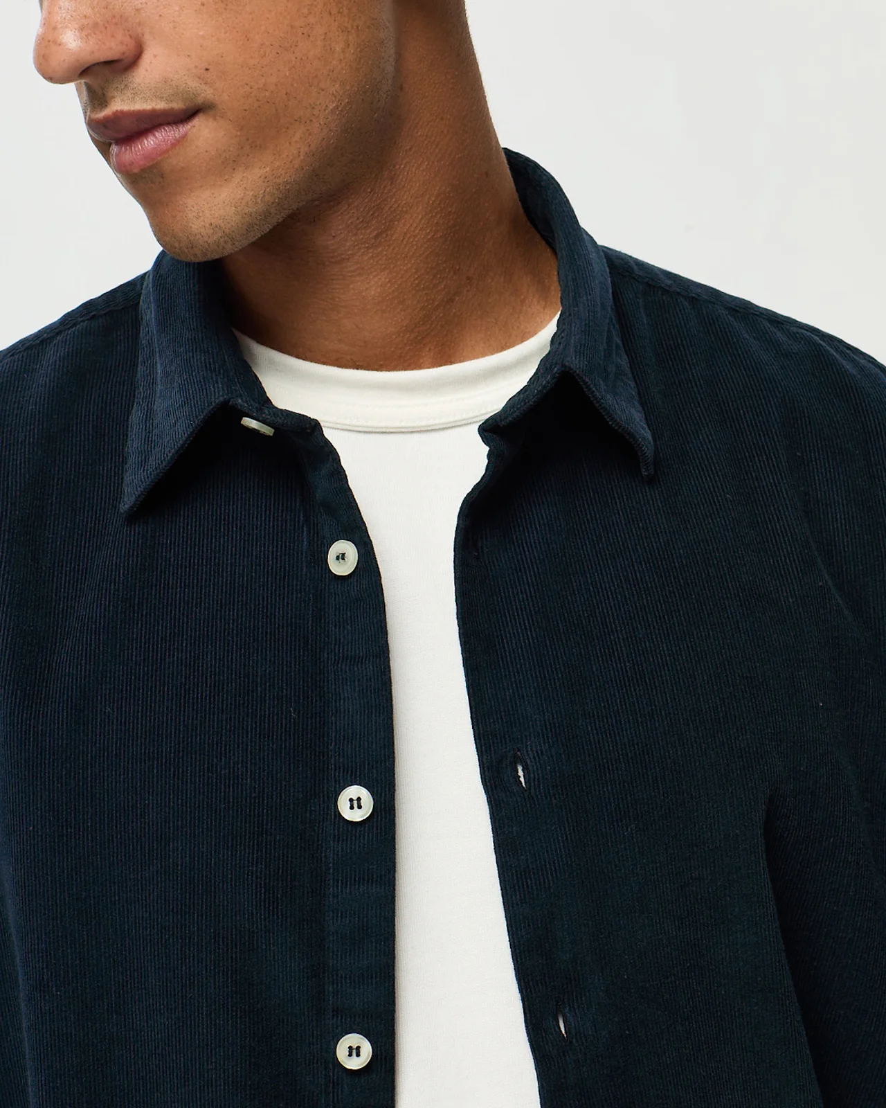La chemise en velours côtelé dans sa version marine intemporelle. Tissée en Espagne chez un fabricant historique depuis 175 ans, cette matière 100% coton organique révèle un côtelé fin au toucher délicat et non contraignant. Sa coupe droite convient naturellement à toutes les morphologies, enrichie par deux poches plaquées poitrine qui allient praticité et esthétique. Un coloris riche et saisonnier qui ancre le vestiaire. Fabrication marocaine.