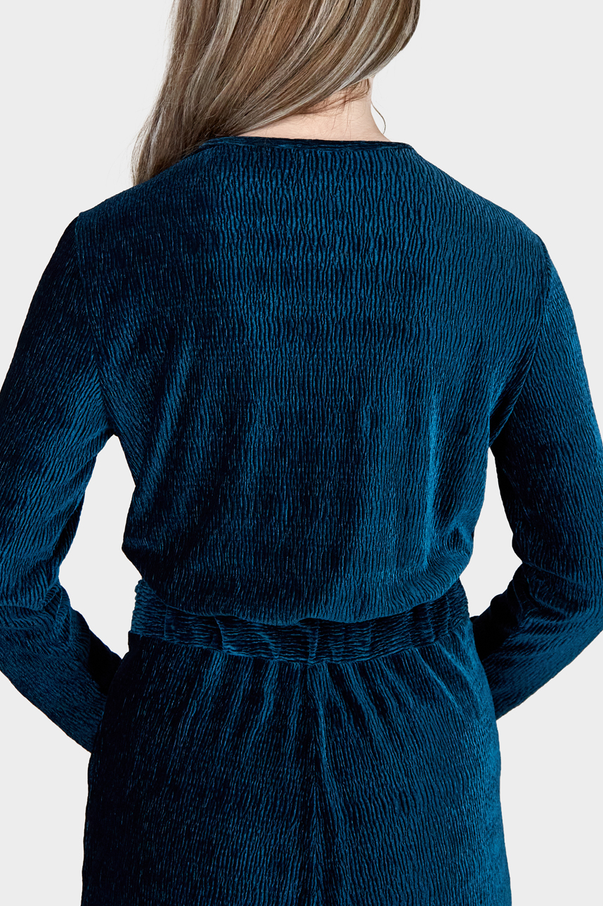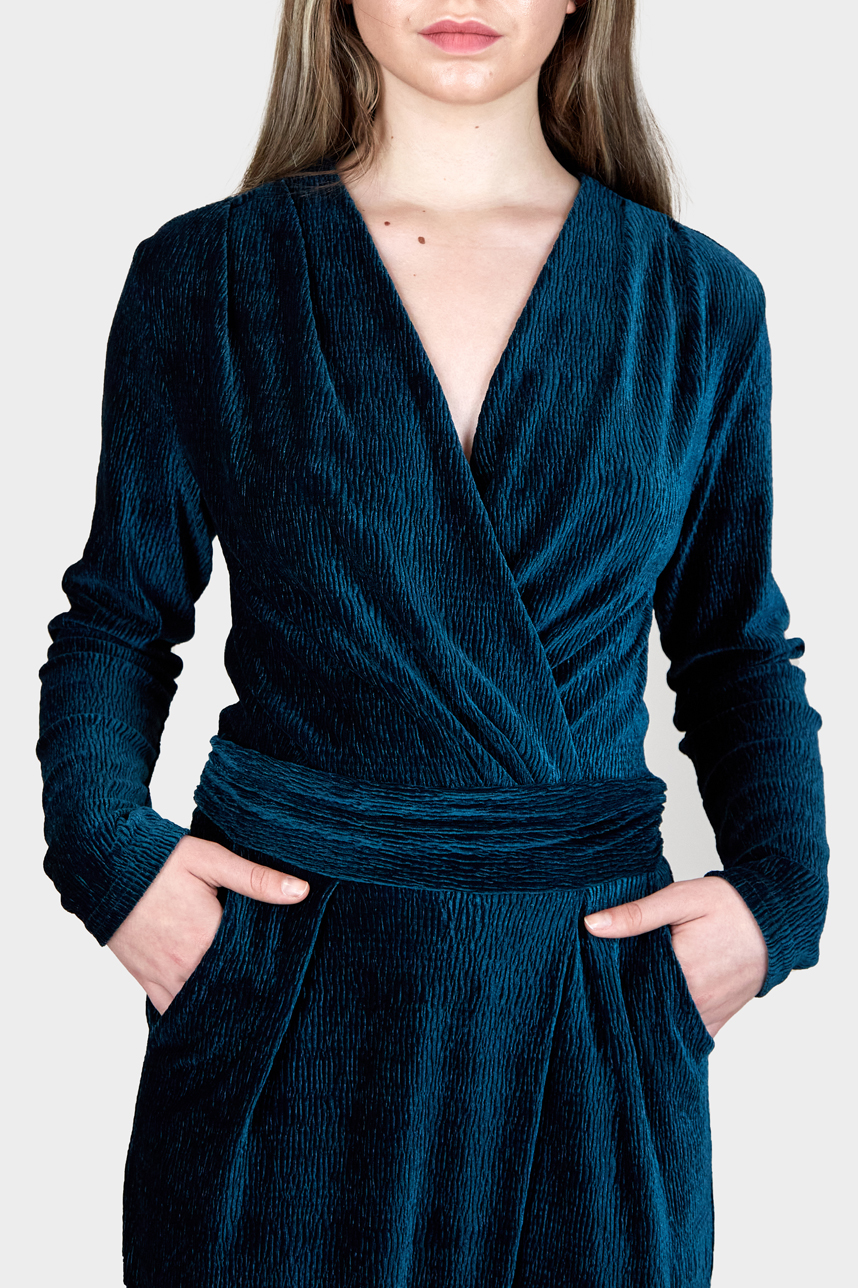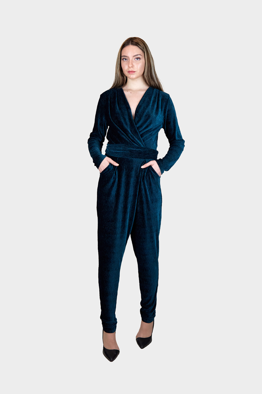 Combinaison en velours froissés MonaYola. Une coupe asymétrique avec des plis pour donner de l’ampleur et garantir un vrai confort. L’encolure croisée en V dotée des plis qui dessine un joli décolleté à effet drapé. Existe en : Noir, Bleu canard, Beige doré Détails Manche longues. Col croisé en V. Ceinture drapée devant et élastique […]
