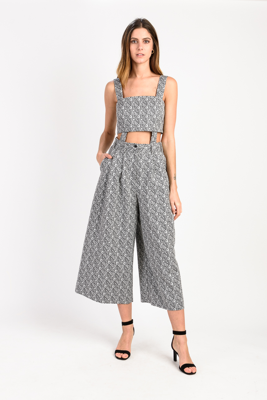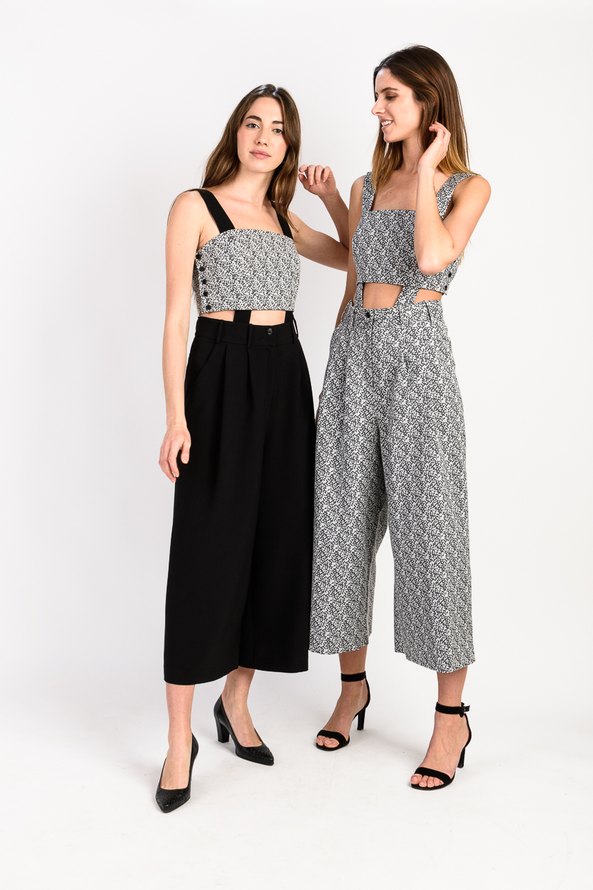 Se porte en combinaison avec ou sans bretelles, en ensemble pantacourt et débardeur.