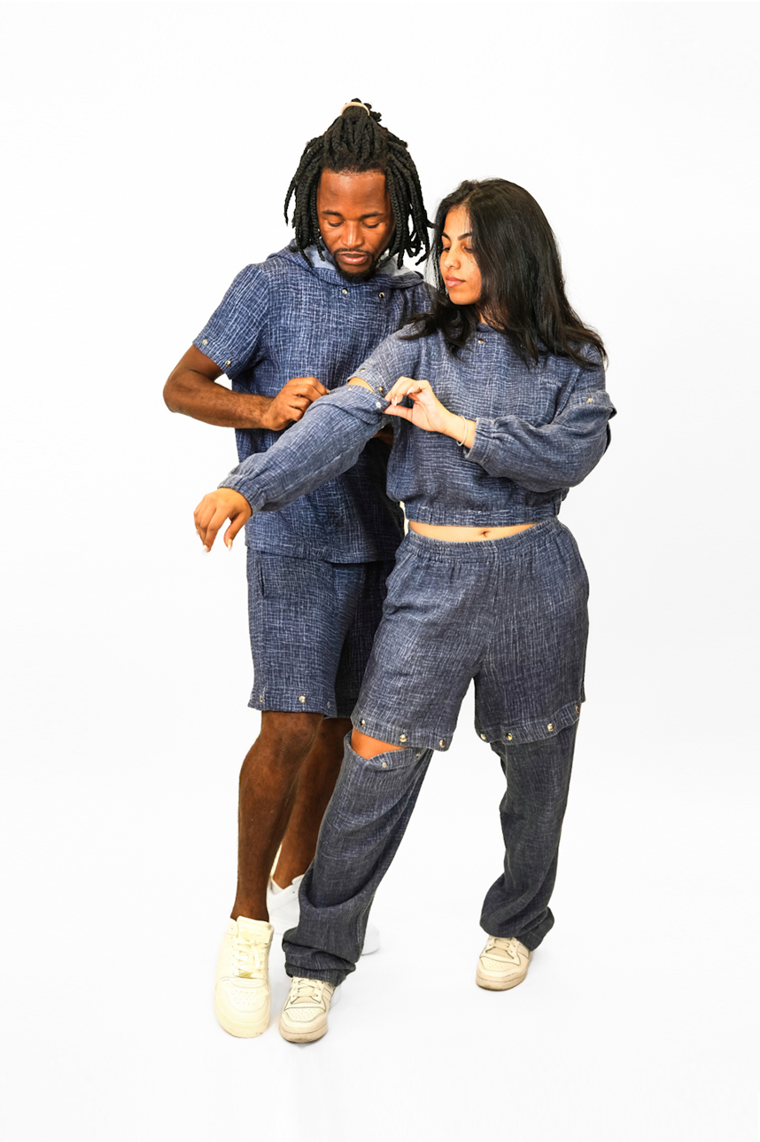 Ce nogender wear confortable, ludique et utile s’adapte à vos besoin tout au long de la journée, il vous protège du froid le matin et il se transforme en Crop Top pour vous rafraichir au soleil.