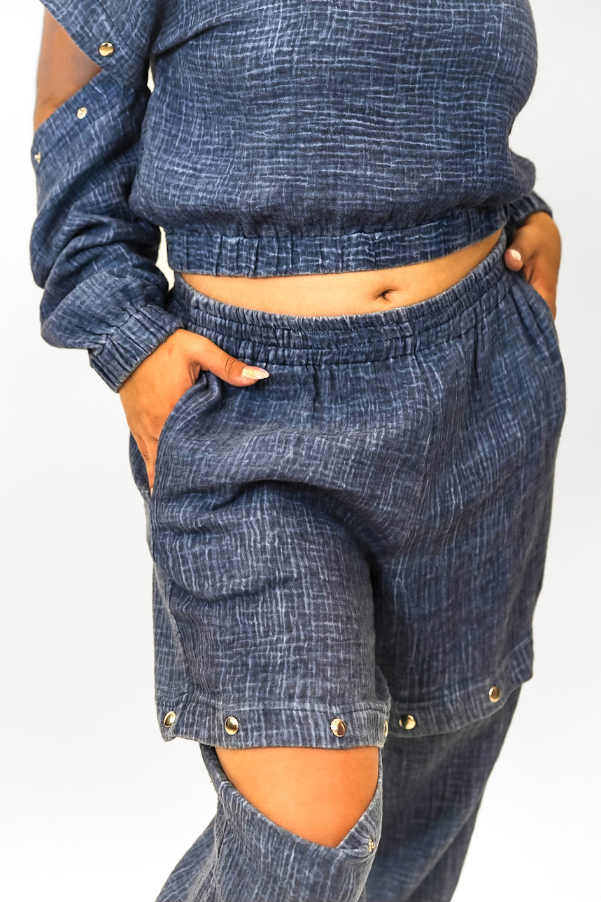 Les morceaux s’attachent et se detachent entre elles grâce à des boutons pressions, pour se transformer en Crop Top.
