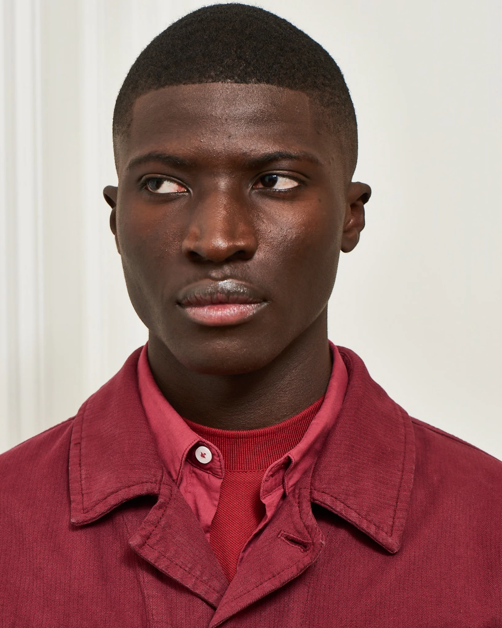 La veste de peintre réinterprétée, dans un esprit militaire et sophistiqué.