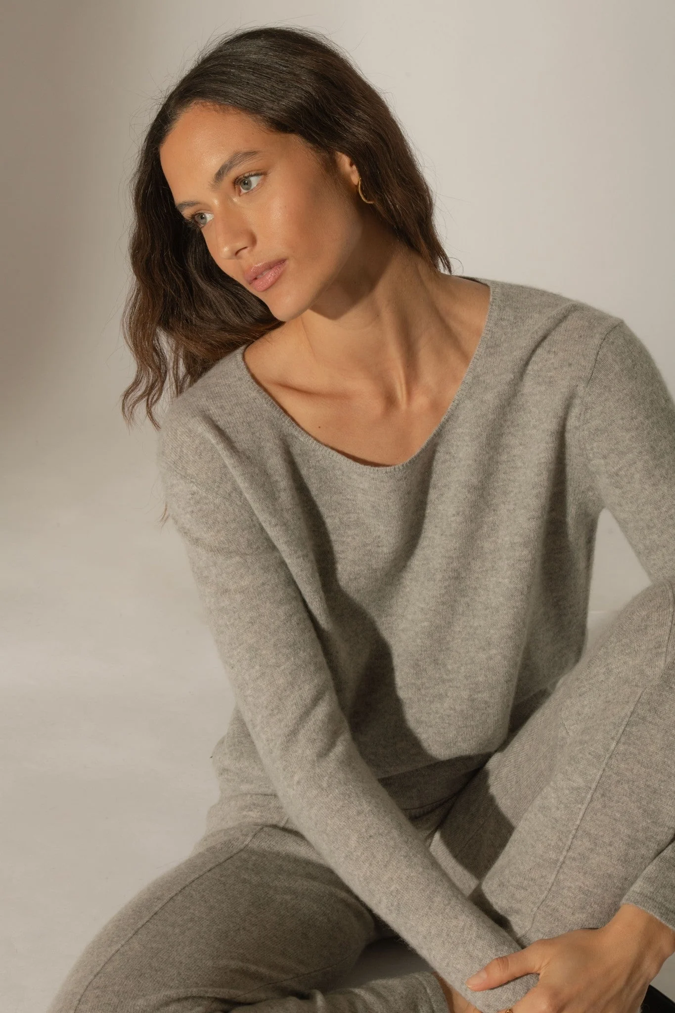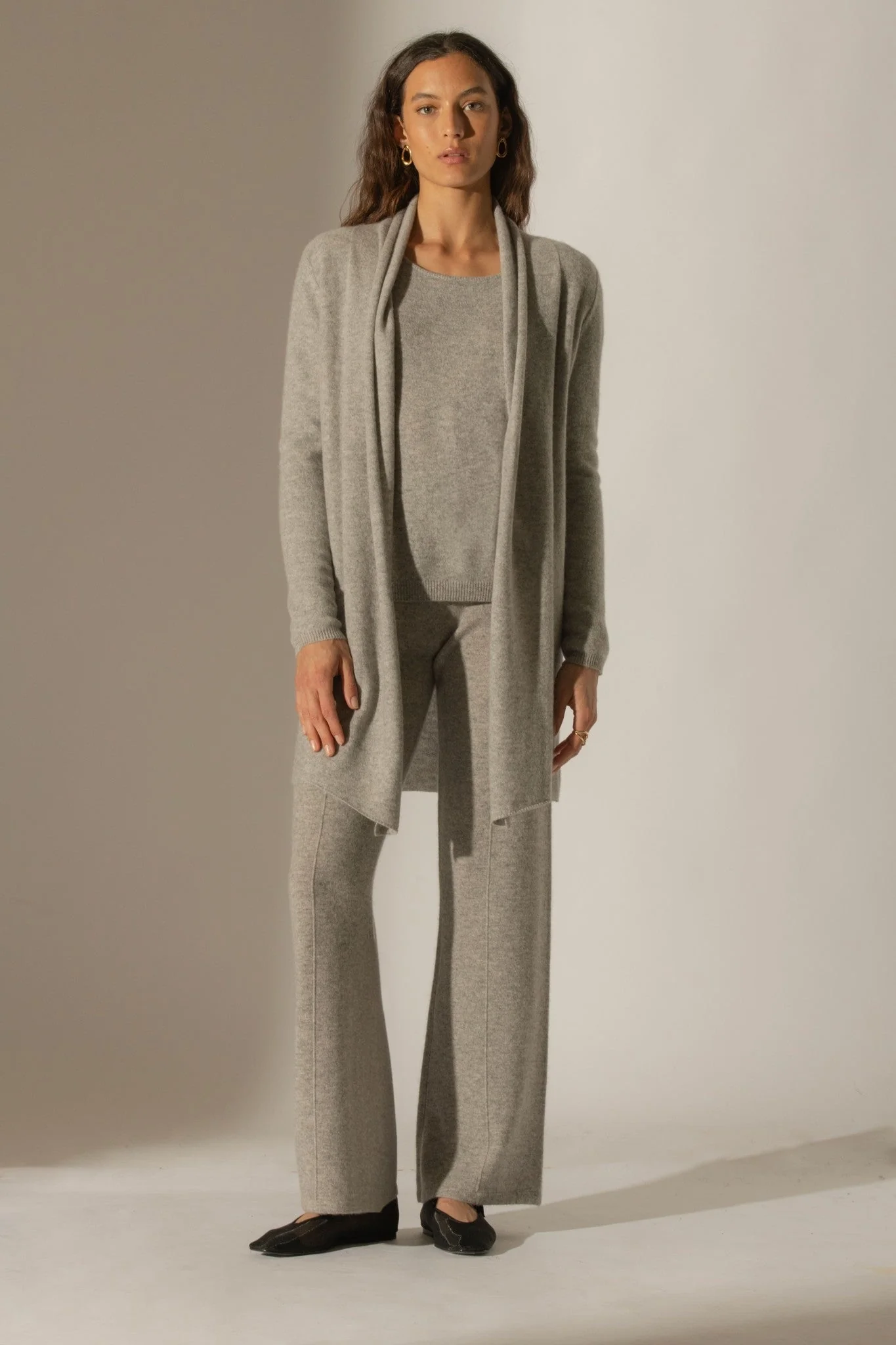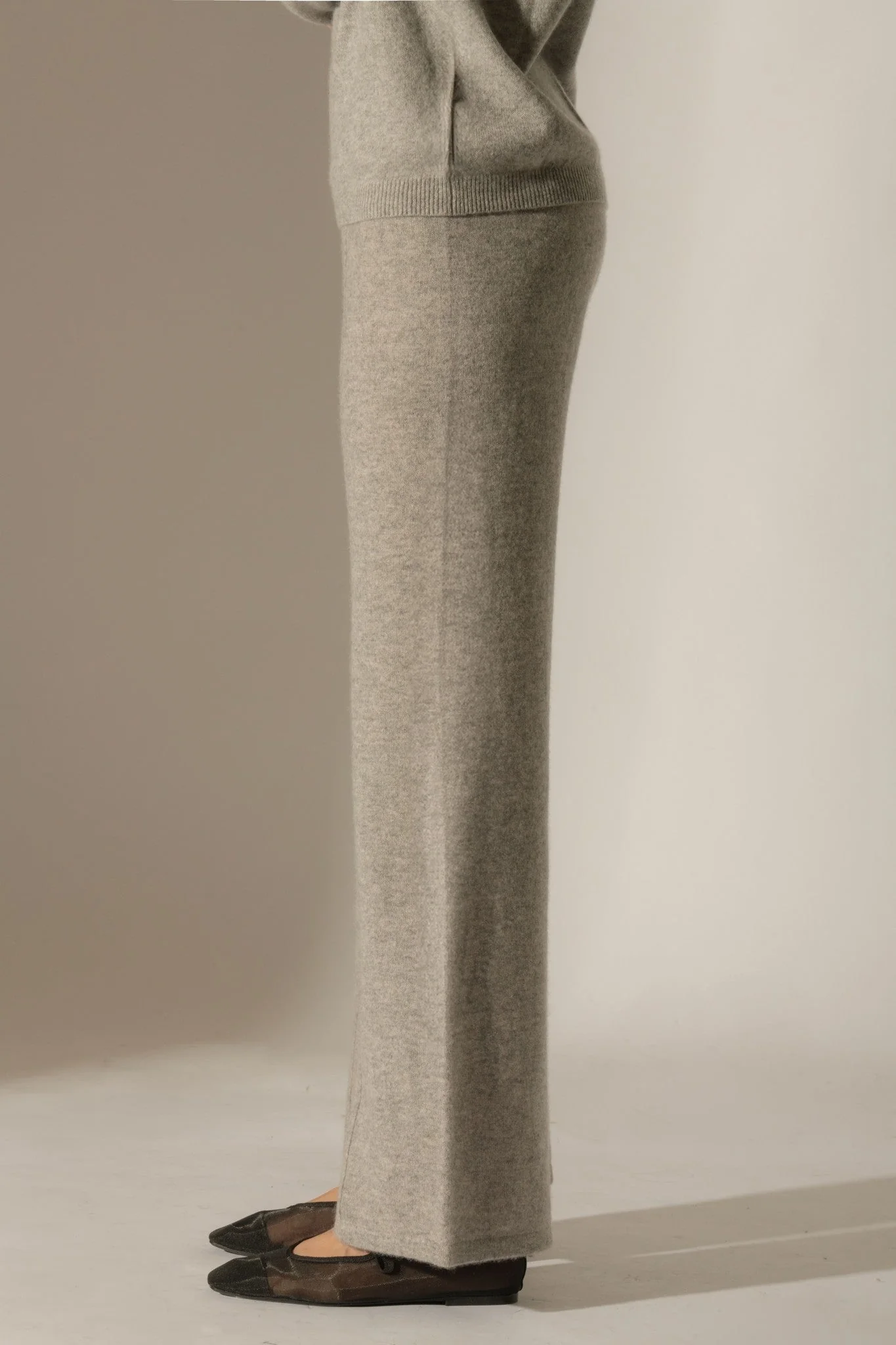 ELOA pantalon large nuage chiné 100% cachemire