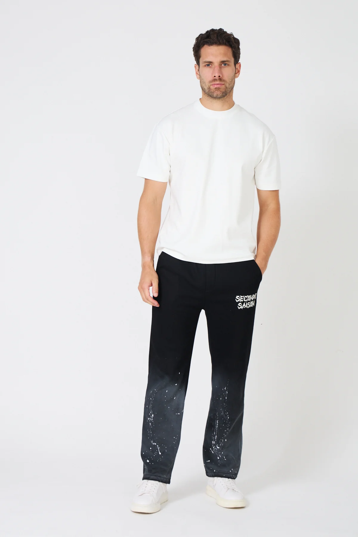Sweat à capuche noir au look urbain audacieux, avec dégradé ombré du gris au noir profond et effet éclaboussures de peinture pour un style moderne et original. TAILLE ET COUPE Coupe droite et confortable pour un style urbain affirmé. Le mannequin mesure 1m80 et porte une taille M. COMPOSITION Sweat à capuche en molleton doux, […]
