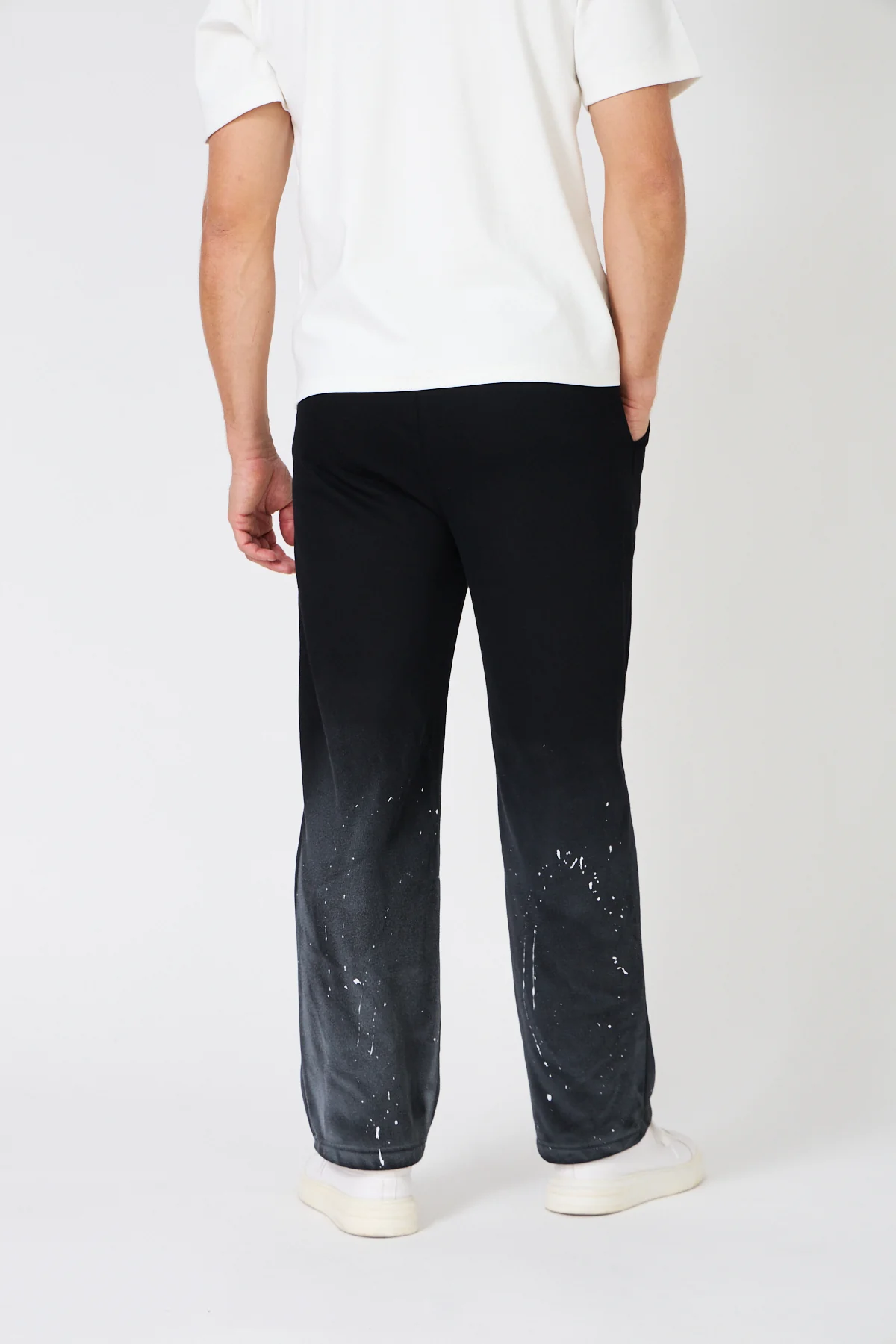 Sweat à capuche noir au look urbain audacieux, avec dégradé ombré du gris au noir profond et effet éclaboussures de peinture pour un style moderne et original.