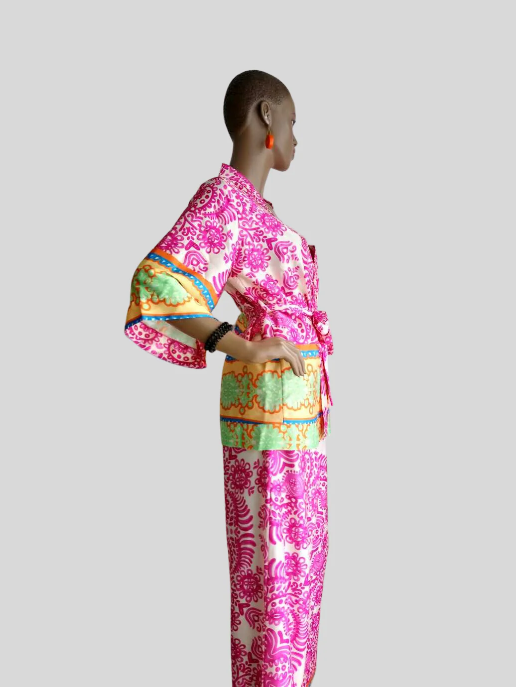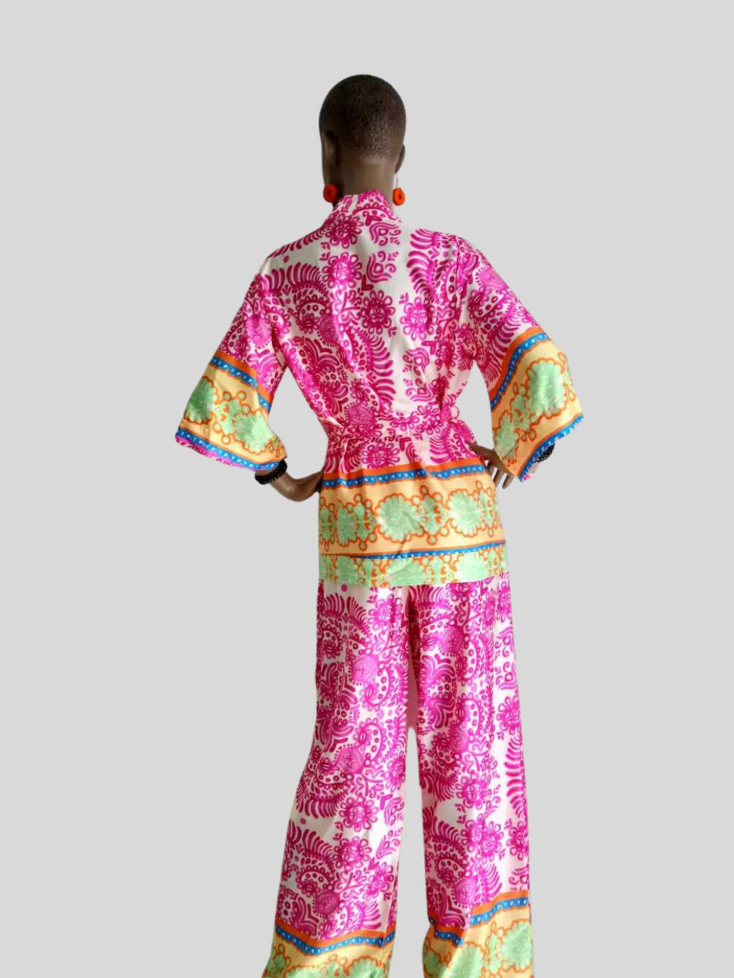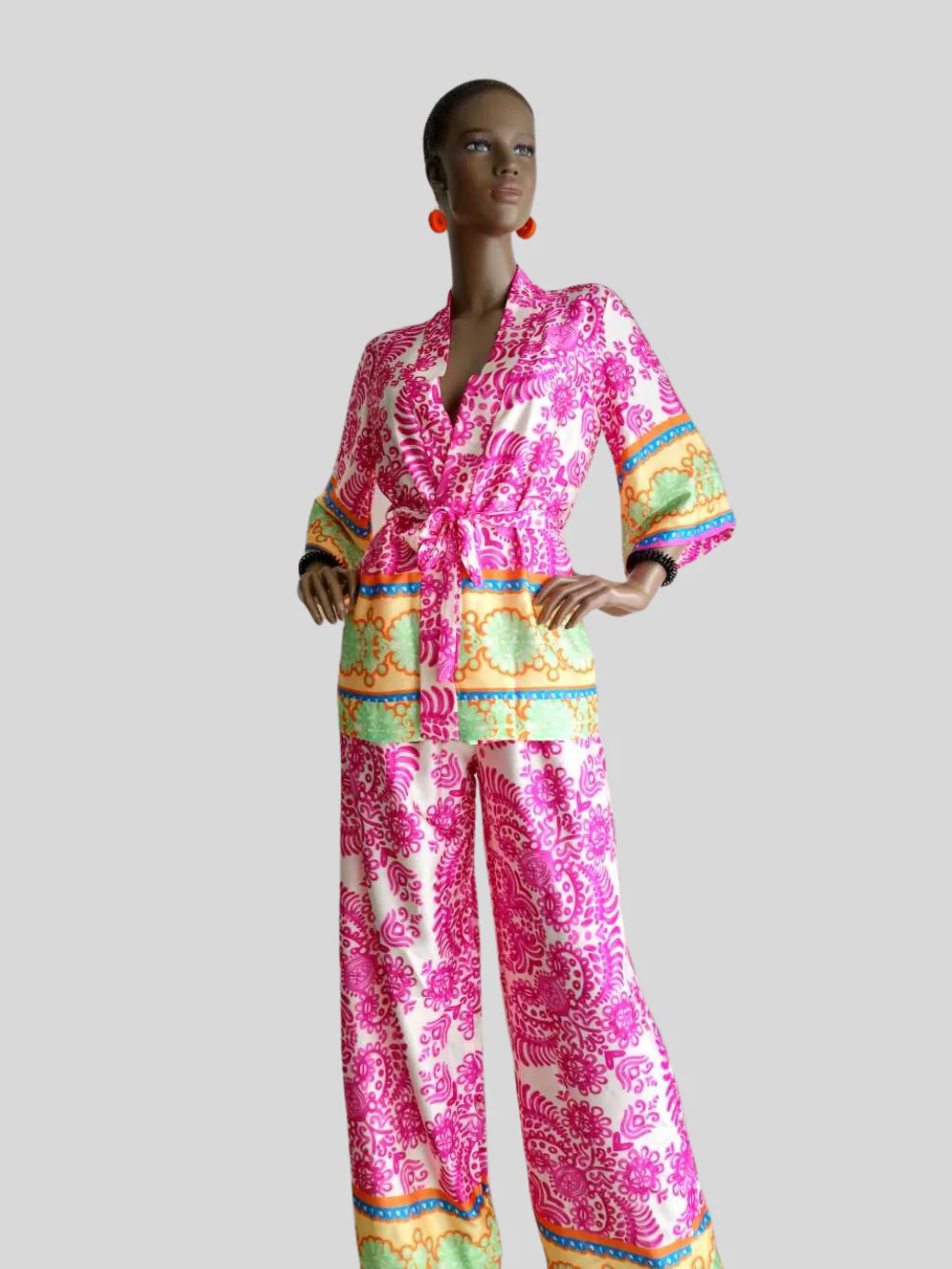 Ensemble pantalon imprimé satiné ROSE FUCHSIA
