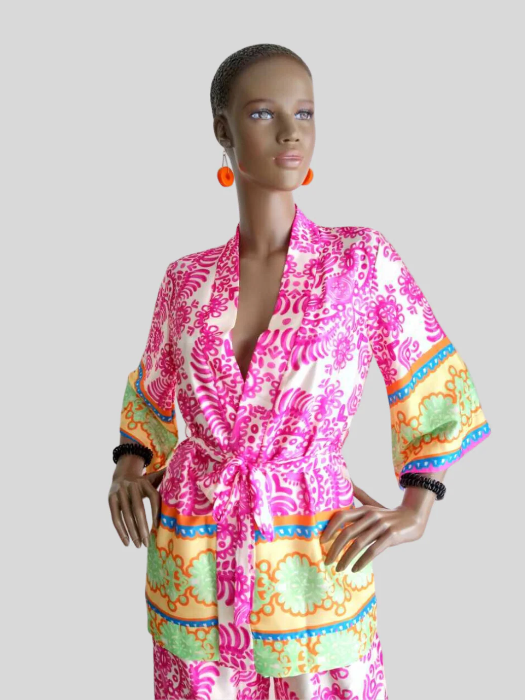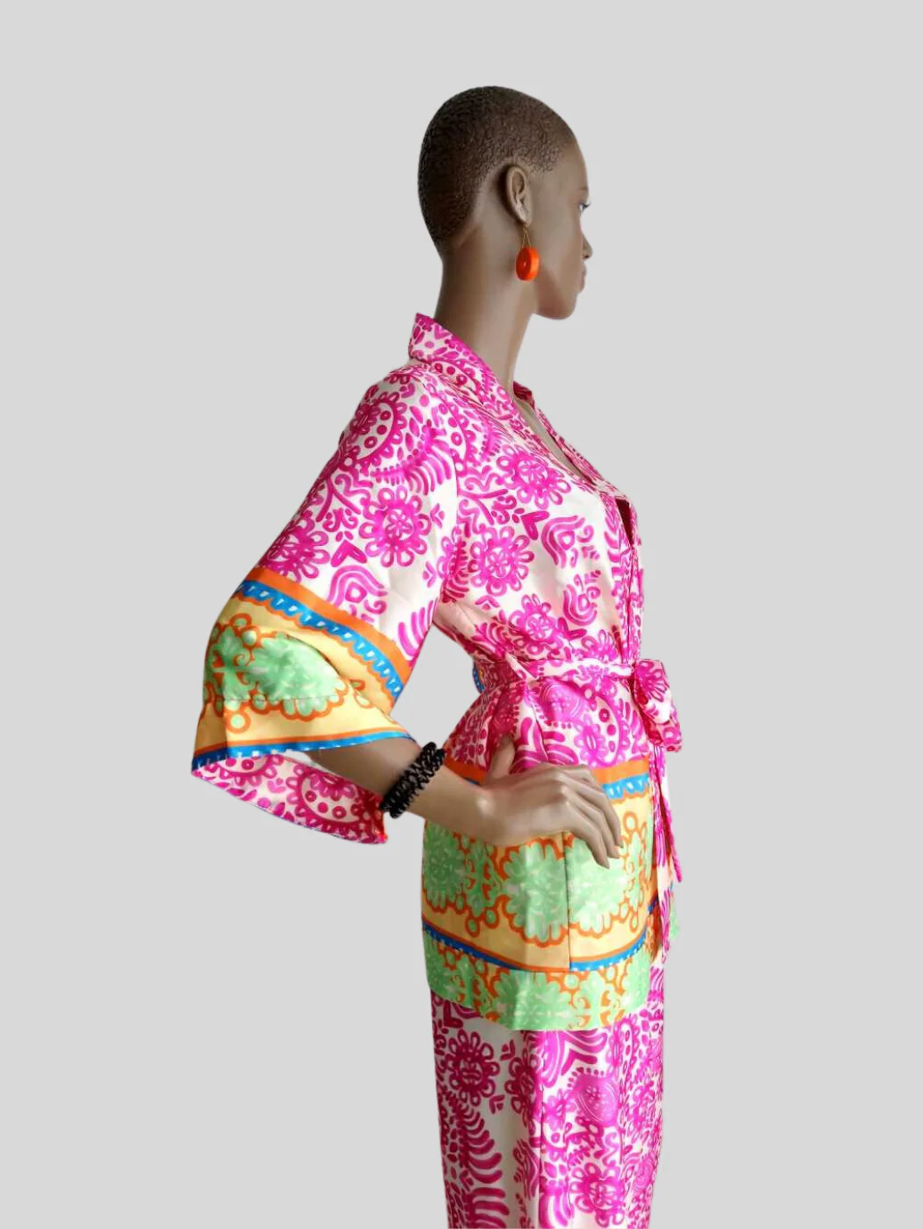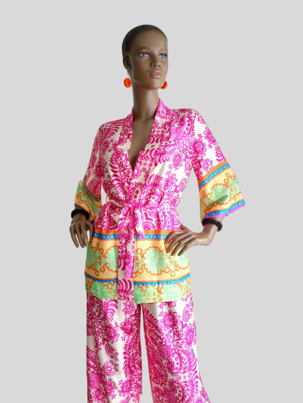 Ensemble pantalon imprimé satiné ROSE FUCHSIA