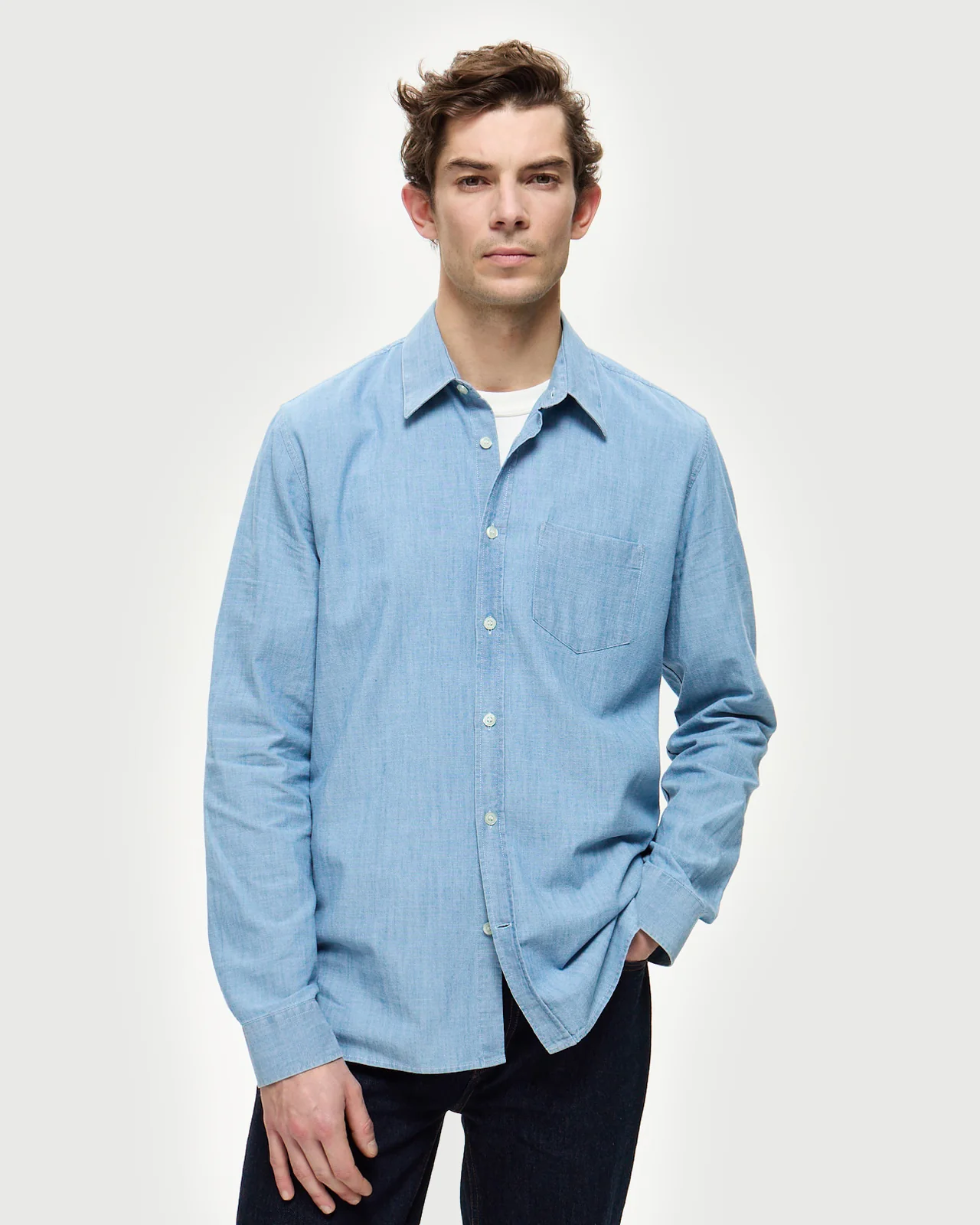 La chemise en jean en chambray qui incarne l’indigo japonais. Son délavage bleach révèle un basique incontournable du vestiaire masculin, enrichi par une poche poitrine fonctionnelle. Sa coupe droite intemporelle s’harmonise naturellement à toutes les morphologies, dans un tissu espagnol tissé depuis 1992 qui garantit qualité et authenticité. Un classique qui traverse les générations. Fabrication marocaine.