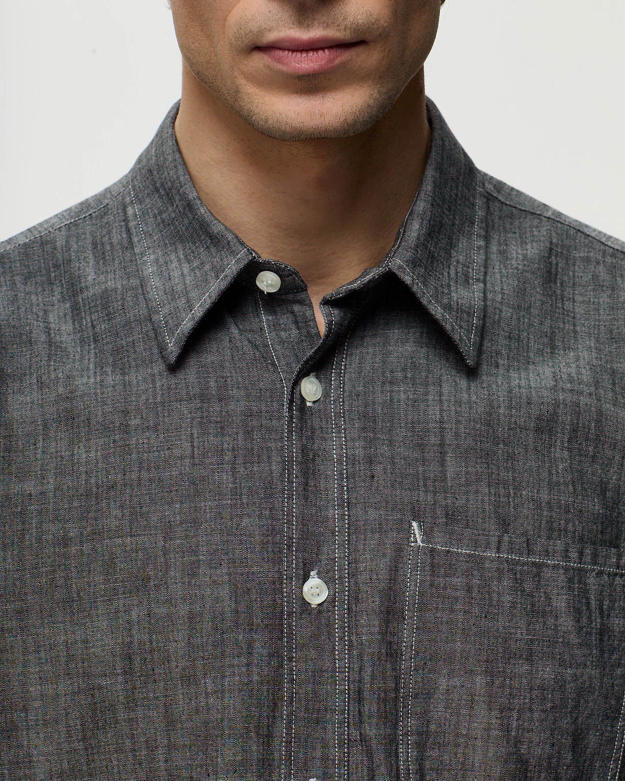 La chemise en chambray noir stone qui affirme son caractère contemporain. Ornée de détails de surpiqûres qui soulignent sa construction, elle arbore un col français moderne et une coupe droite qui s’adapte harmonieusement à toutes les morphologies. Sa teinte intemporelle traverse les saisons avec aisance, dans un coton espagnol tissé depuis 1992 qui garantit authenticité et durabilité. Fabrication marocaine.