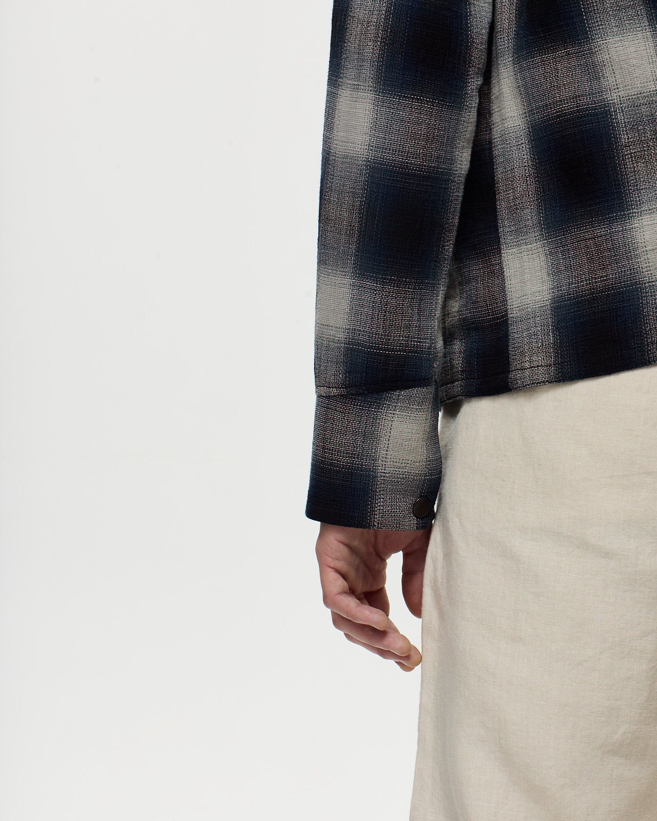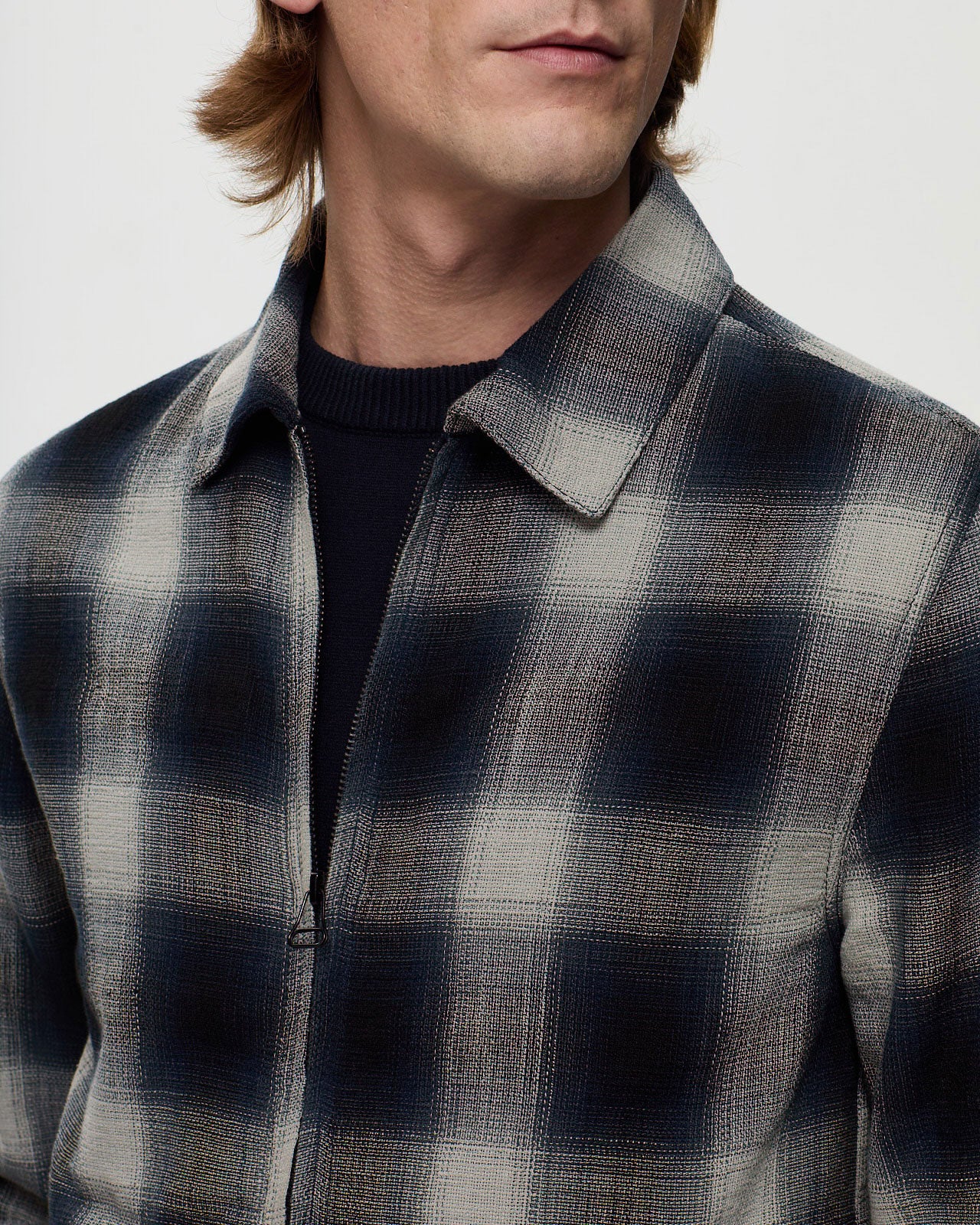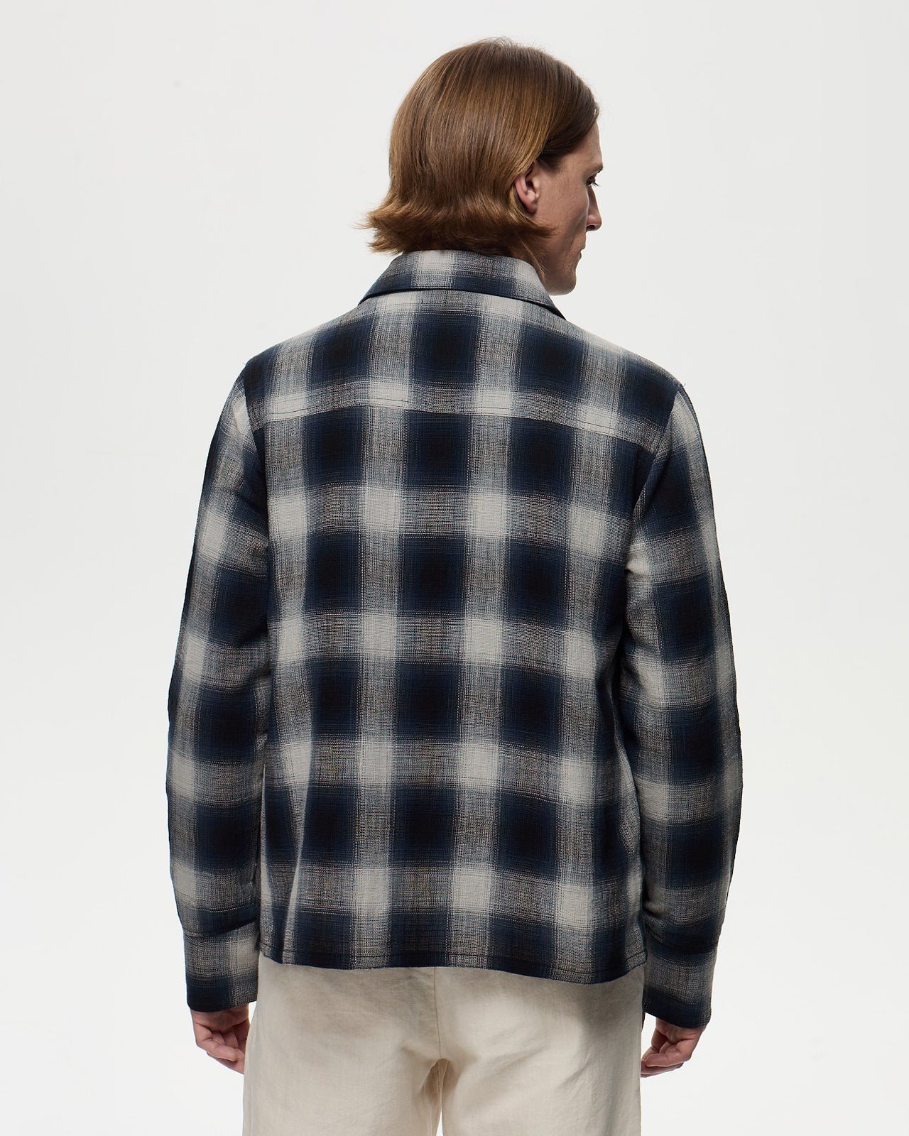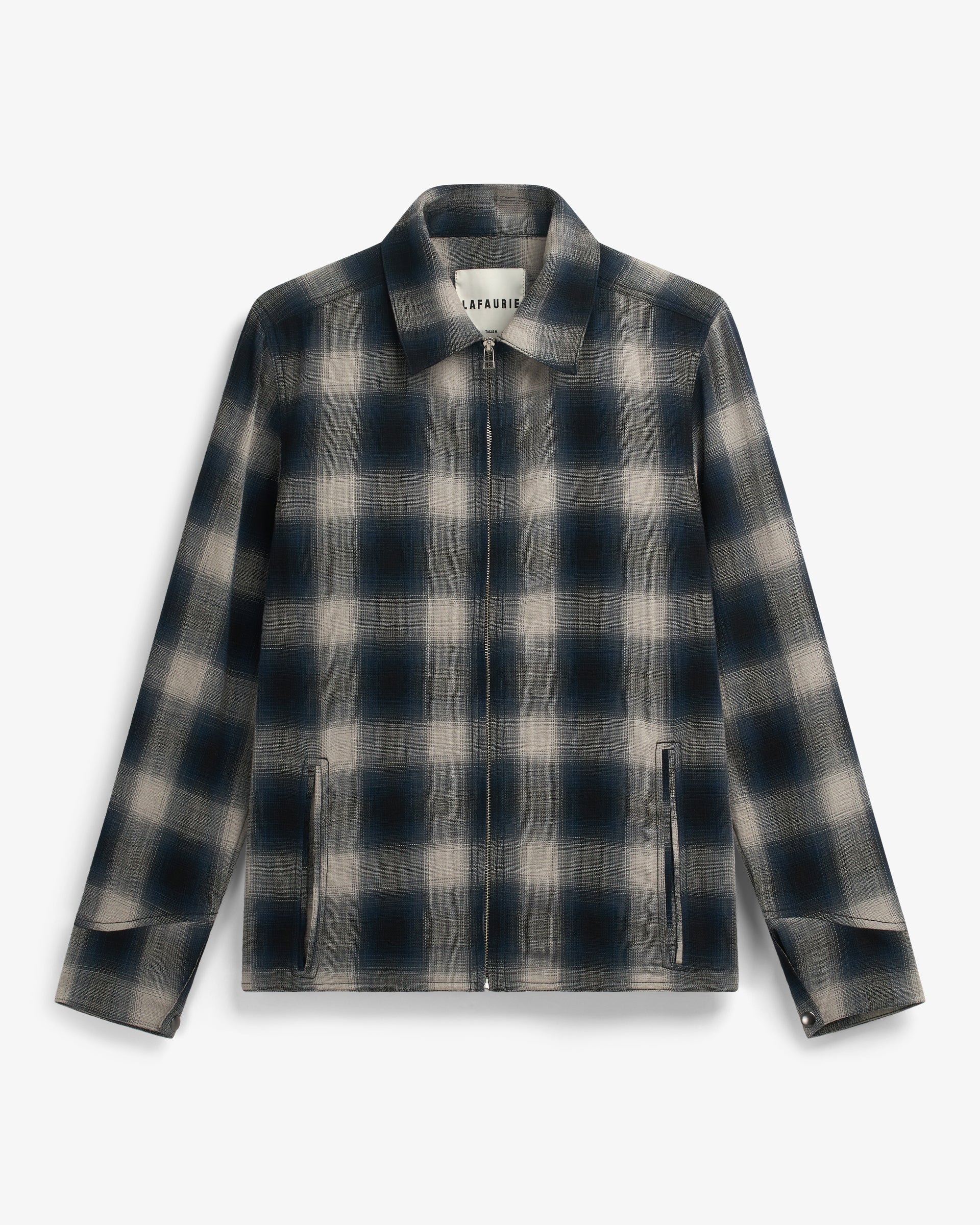 Découvrez HITCHCOCK, la veste chemise polyvalente en tissu à carreaux windowpane, confectionnée en 100 % coton et non doublée. Avec une coupe droite et un col classique à pointe, elle se ferme par une fermeture éclair double curseur. La veste est dotée de deux poches extérieures passepoilées avec double passepoil, ainsi qu’une poche intérieure passepoilée. Les poignets sont doublés avec le même tissu et se ferment par des boutons.