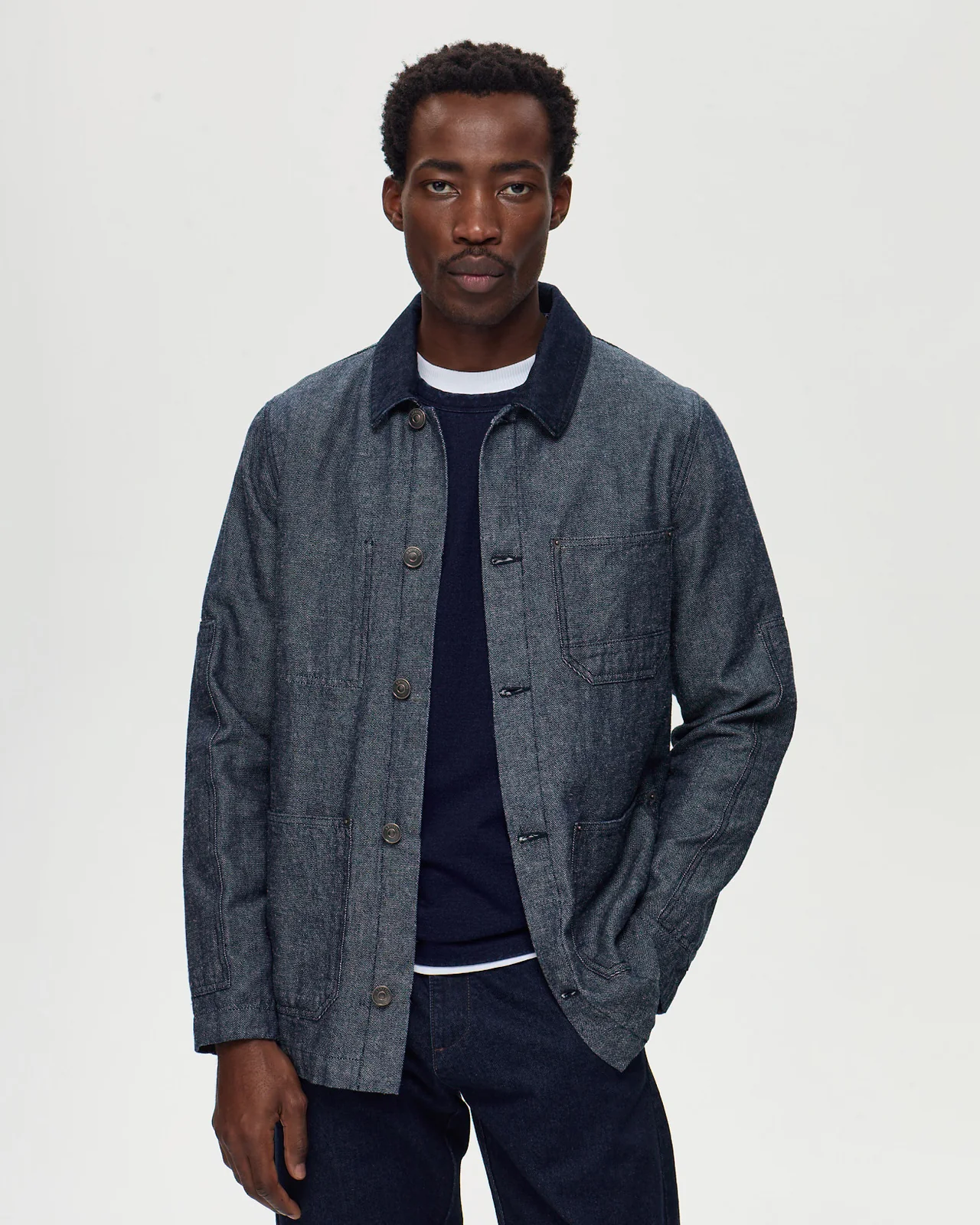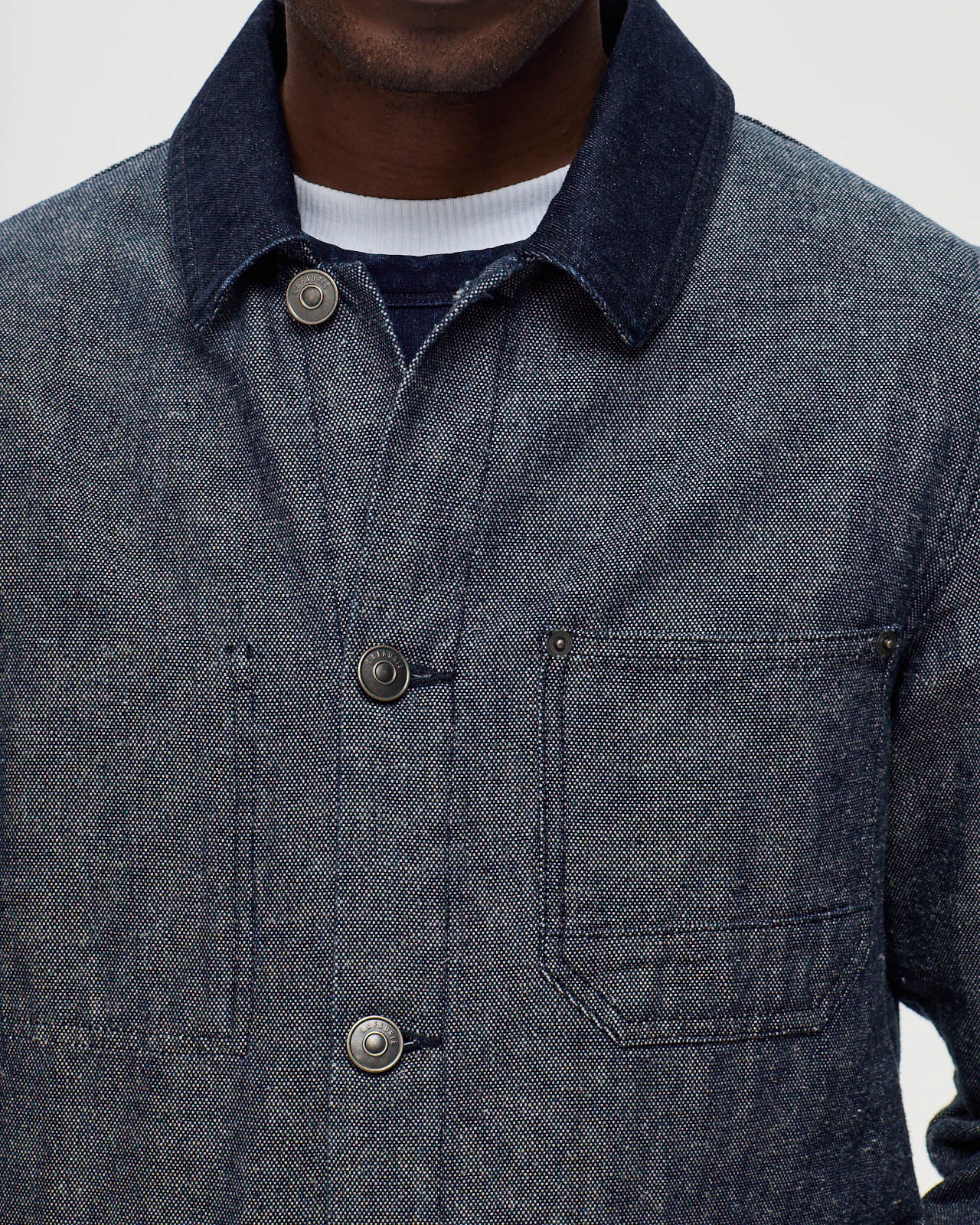 Découvrez la veste de peintre HOKUSAI, une pièce où style et fonctionnalité s’unissent harmonieusement. Confectionnée dans un mélange résistant de coton et de chanvre, elle arbore une coupe droite et un col français rehaussé d’un élégant détail bi-matière. Pensée pour allier praticité et esthétique, cette veste est dotée de multiples poches, dont une poche poitrine extérieure et une poche intérieure discrète. Les boutons en nickel vintage, gravés du logo LAFAURIE, ajoutent une touche intemporelle à ce classique revisité.