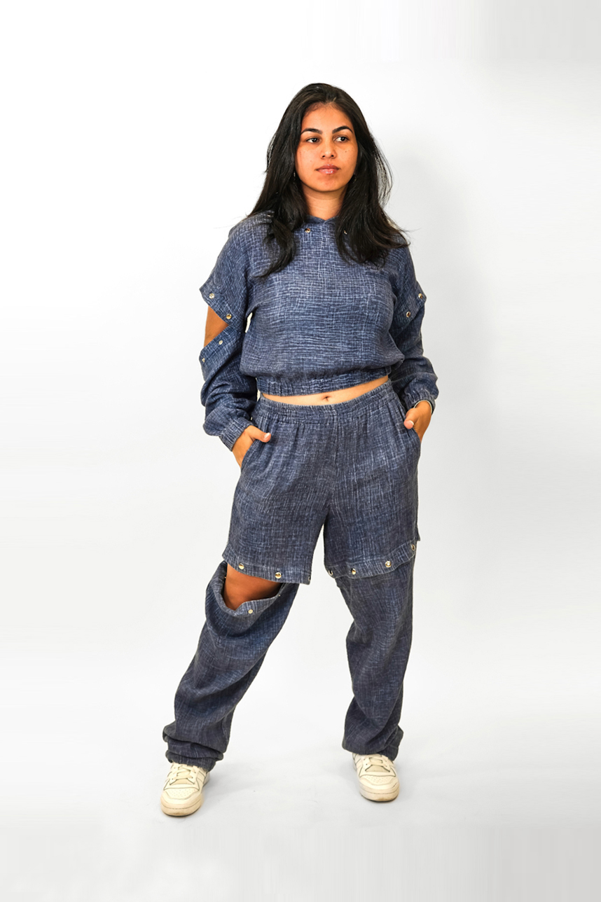 Jogging unisex en gaze de coton convertible en short.