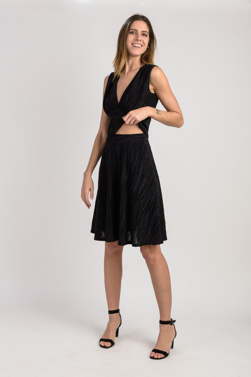 Jupe Evasée Fluide en Lurex Noir