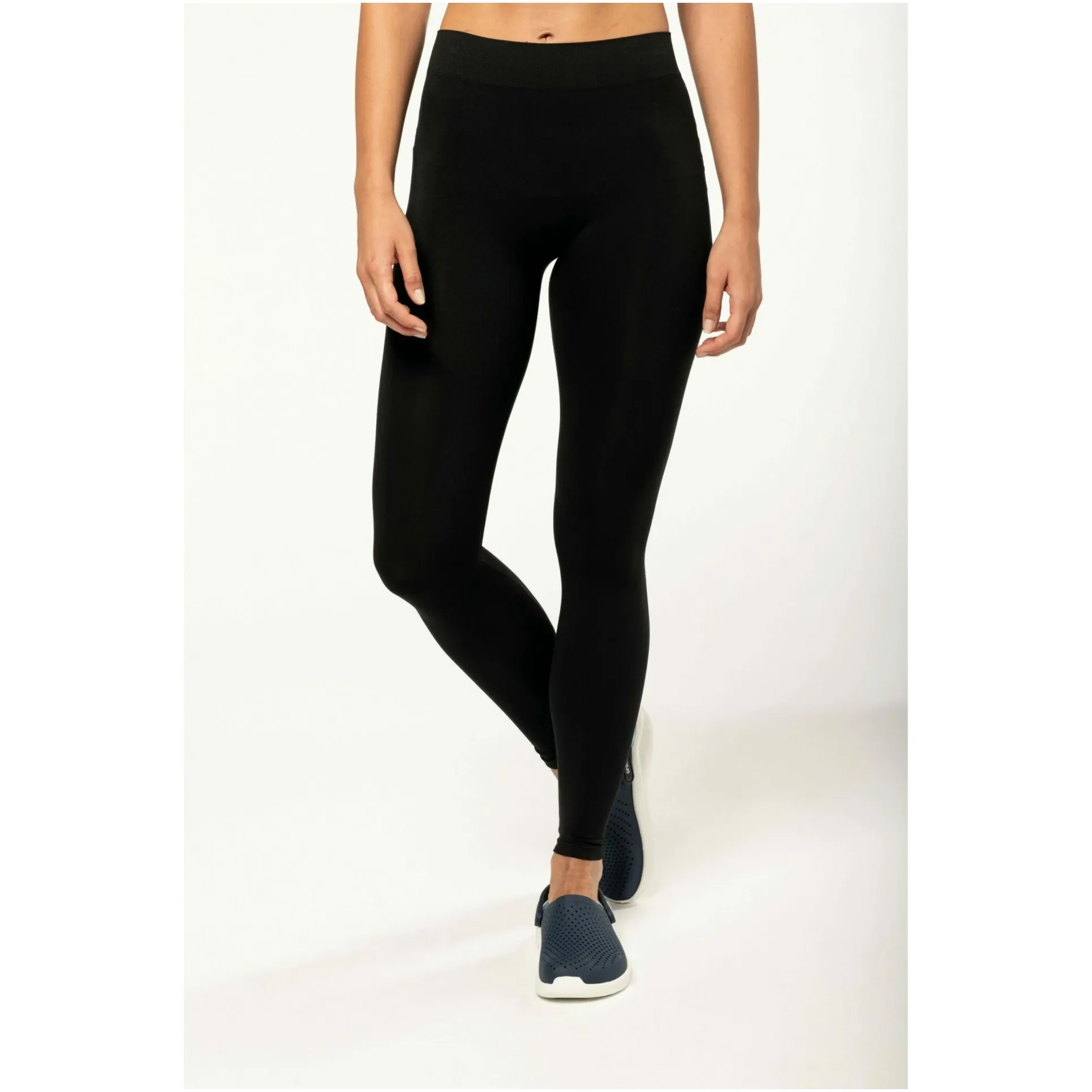 Tricoté sans coutures, ce legging pour femme offre un maximum de confort, permettant de le porter sans inconfort pendant de longues périodes. Il est assemblé avec une couture d’entrejambe et comporte une finition ceinture côtes 1×1 ainsi qu’un ourlet en bas de jambe. Ses caractéristiques, telles que son élasticité et sa couleur noire, le rendent facile à coordonner avec d’autres vêtements tout en restant pratique et élégant.