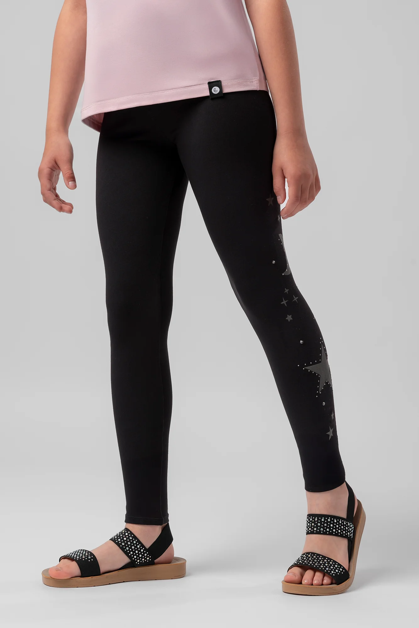 Leggings ornés de détails en feuille métallisée et de cristaux