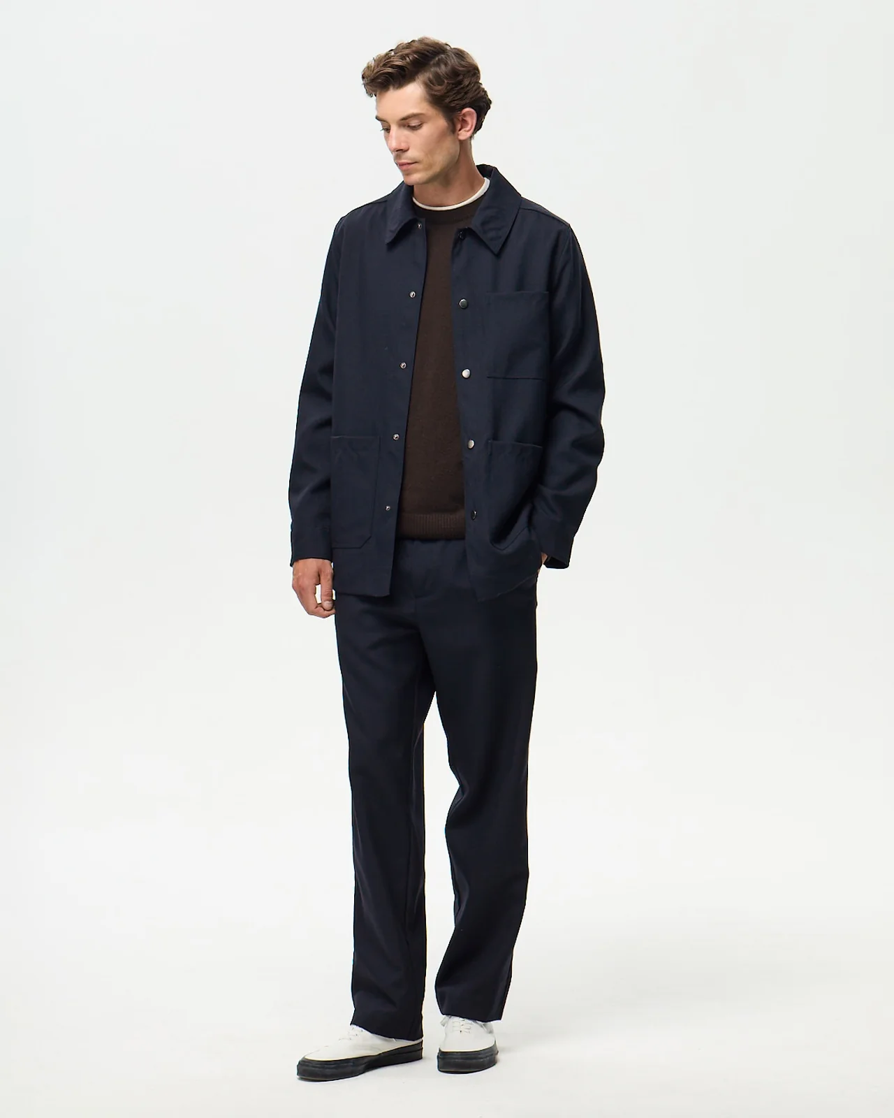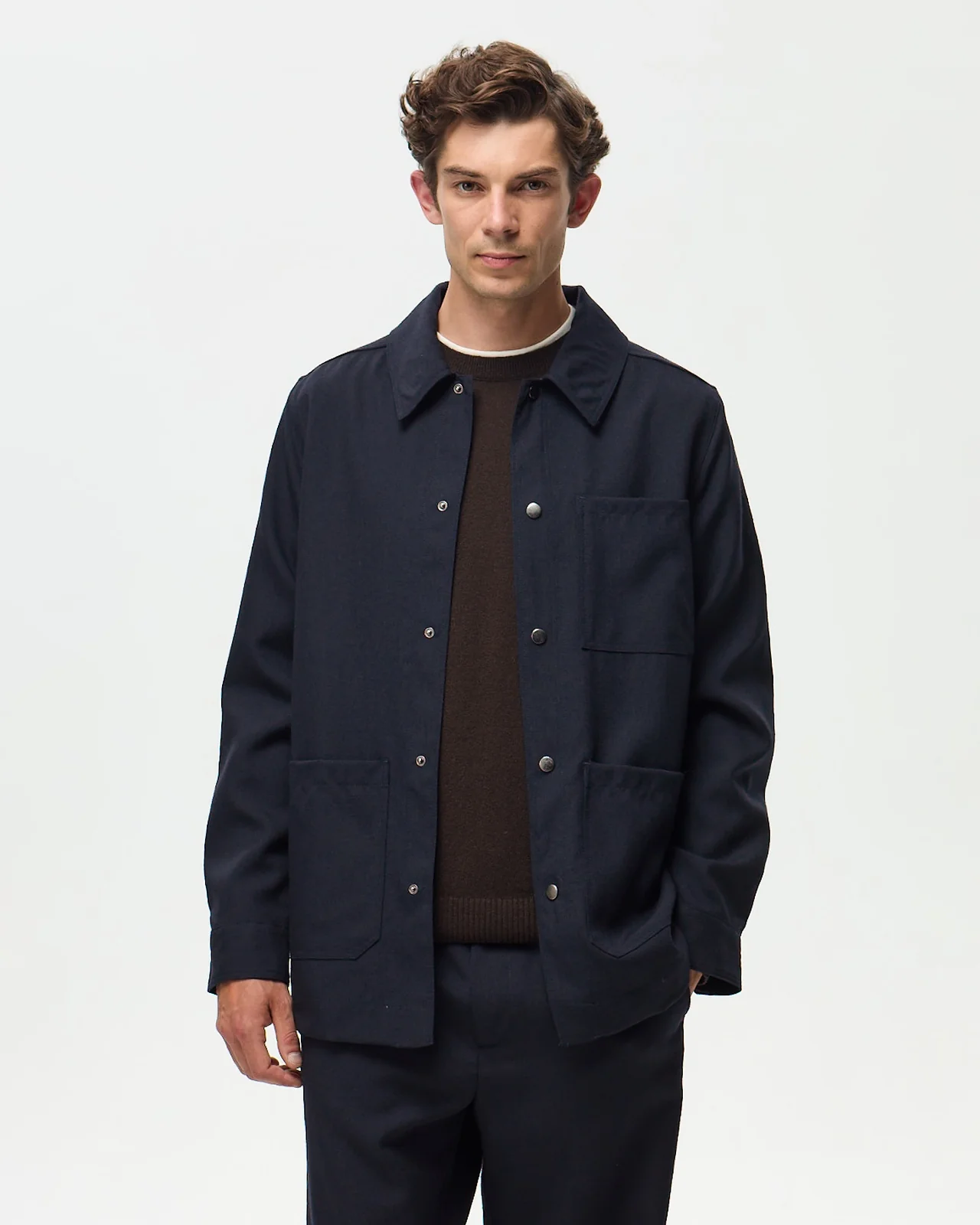 La veste city en drap de laine, l’esprit utilitaire raffiné. Confectionnée en tissu italien d’exception, tissé depuis 1983, elle révèle une étoffe chaude, dense et respirante au tombé structuré. Sa main sèche légèrement rustique apporte une authenticité recherchée. Coupe droite doublée et ouatinée qui s’adapte à toutes les morphologies. Porté fluide et confortable, pensé pour la superposition. Coloris navy intemporel et polyvalent. Fabrication tunisienne.
