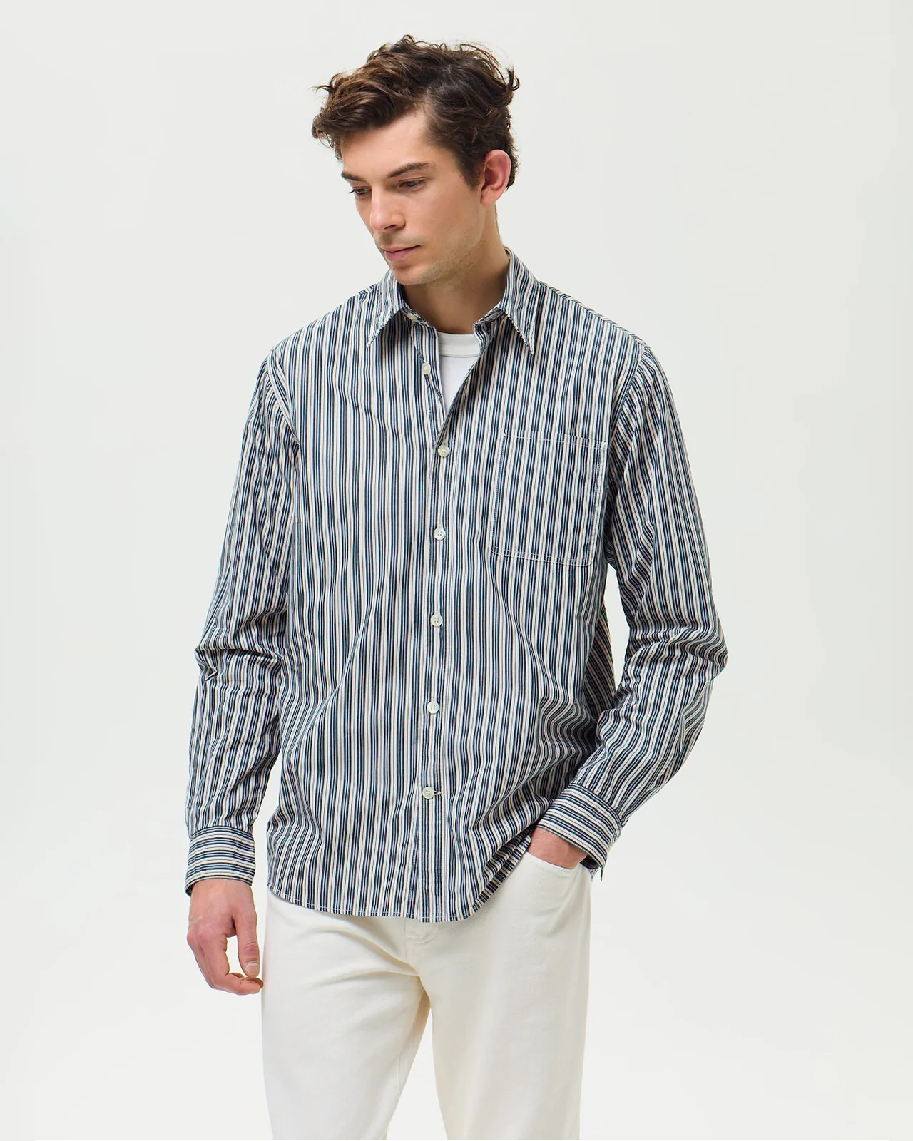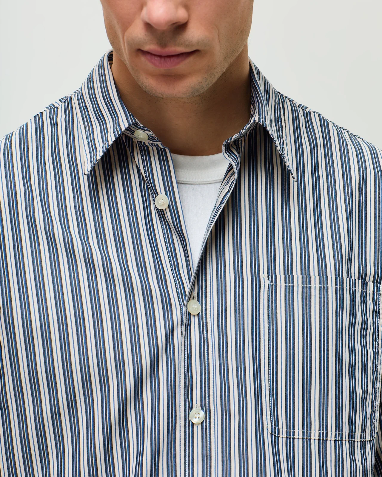 La chemise rayée qui réveille le vestiaire sans forcer. Lucien affiche des rayures verticales contrastées créant un impact visuel graphique et assumé. Des lignes franches qui structurent la silhouette avec élégance. Son col français intemporel traverse les époques sans faillir. Sa coupe droite au volume confortable accompagne vos mouvements naturellement. Taillée dans une popeline fraîche au tissage serré, elle garde son allure du matin au soir et résiste aux plis avec aisance. Le coton respire même quand les températures montent. Une chemise essentielle qui traverse les modes et les saisons. Du bureau au week-end, sans l’ombre d’un doute.