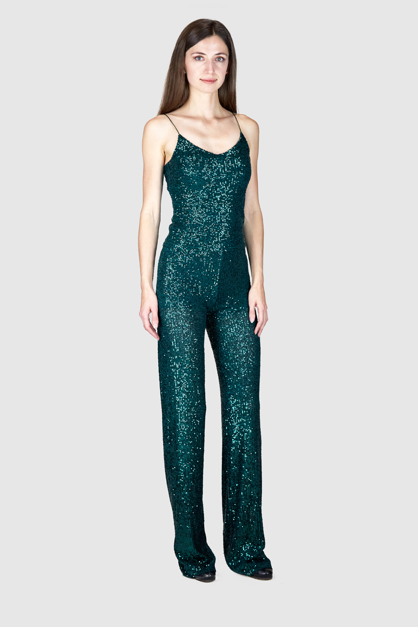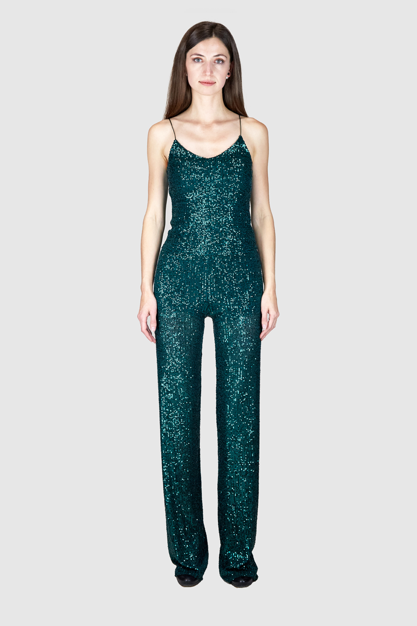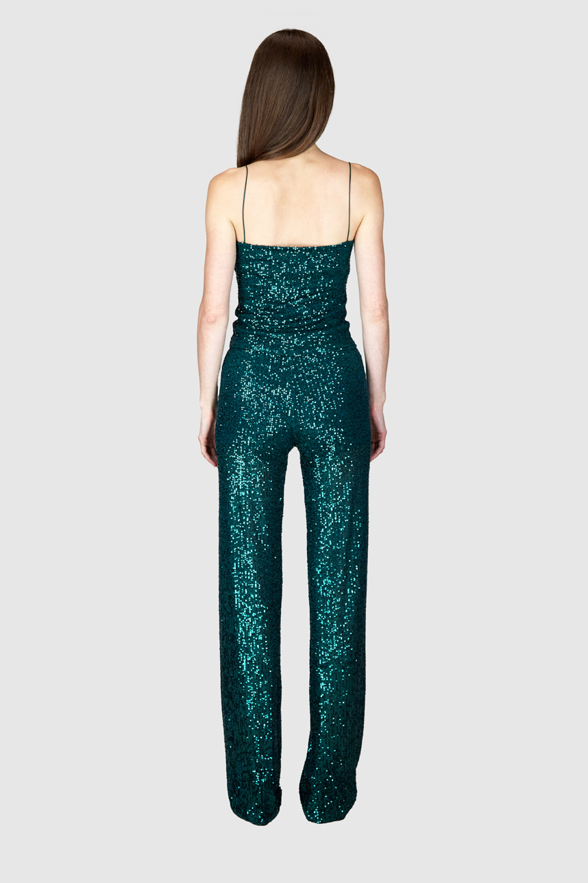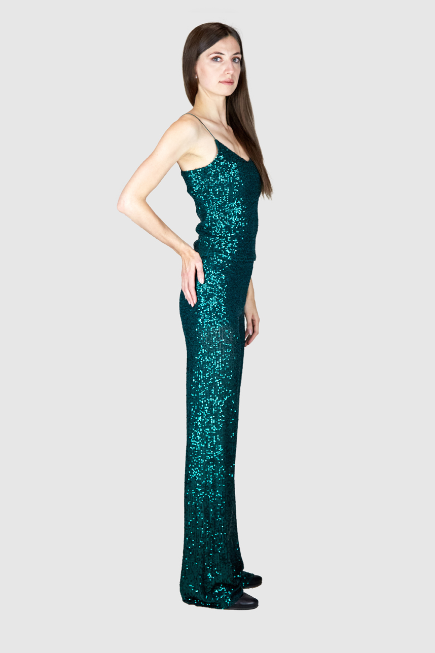 Tissus jersey brodée de paillettes, Couleur vert sapin.