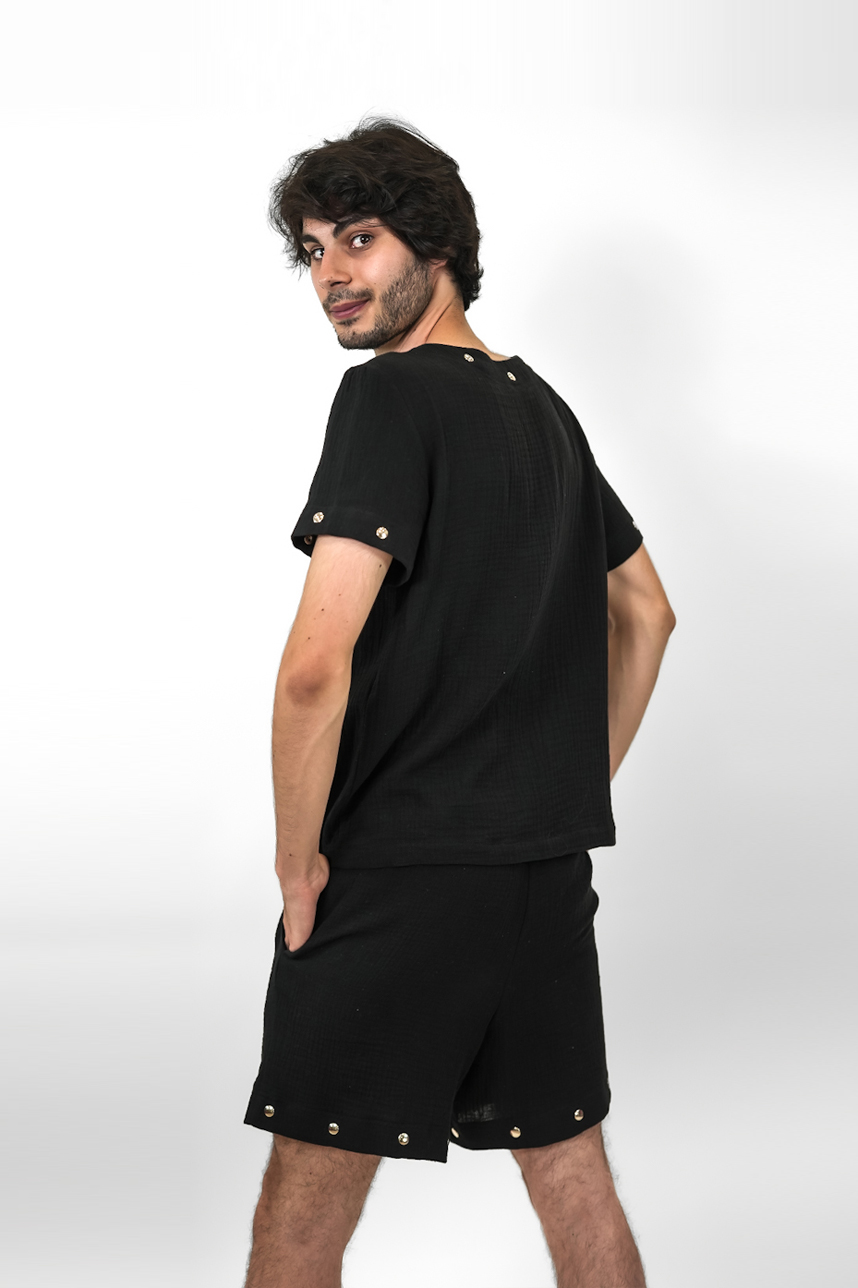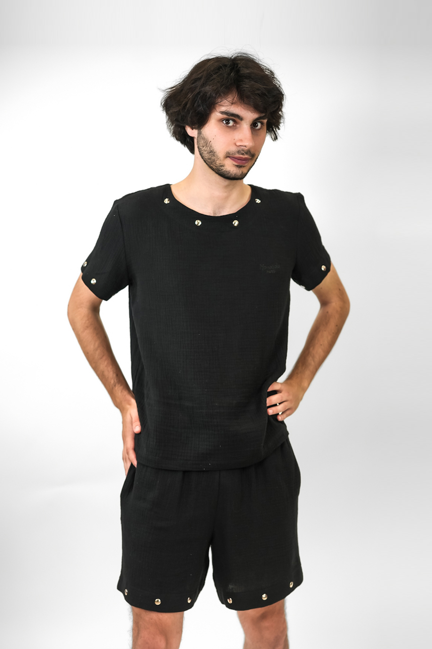 Sxeatshirt Transformable 3 en 1 Homme Noir MonaYola Sweatshirt homme modulable en gaze de coton, composé d’un T-shirt à Capuche et manches interchangeables et amovibles. Les morceaux s’attachent et se detachent entre elles grâce à des boutons pressions, pour se transformer en T-shirt manches longues à capuche ou en T-shirt manches courtes à ou […]