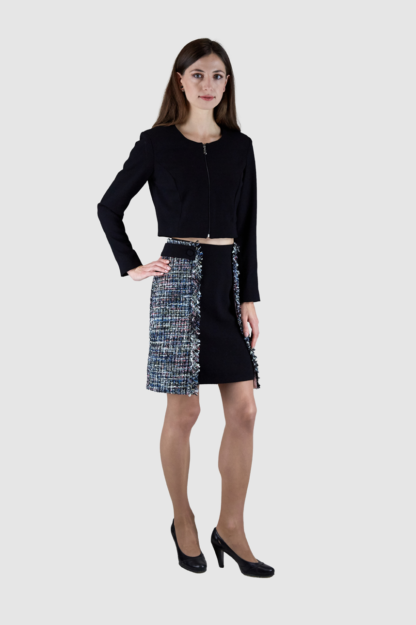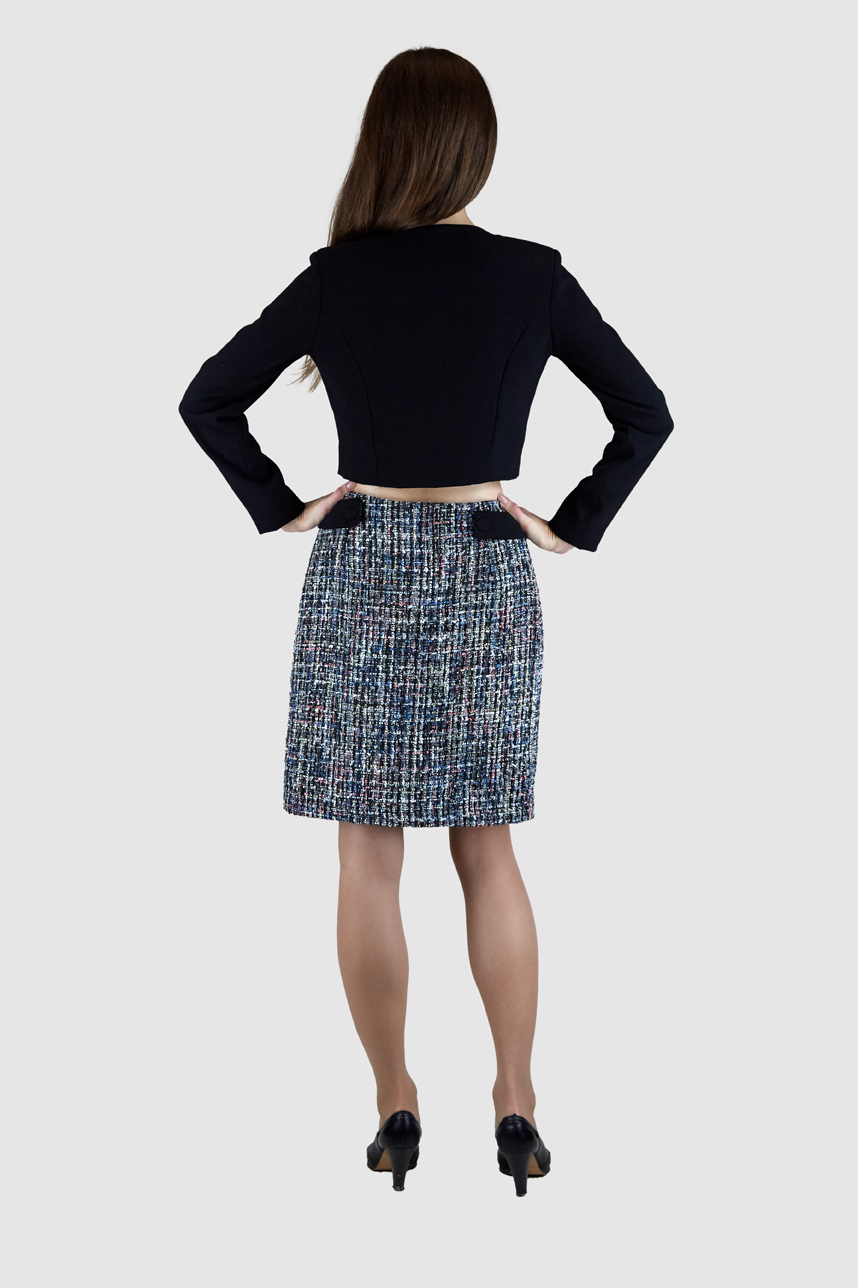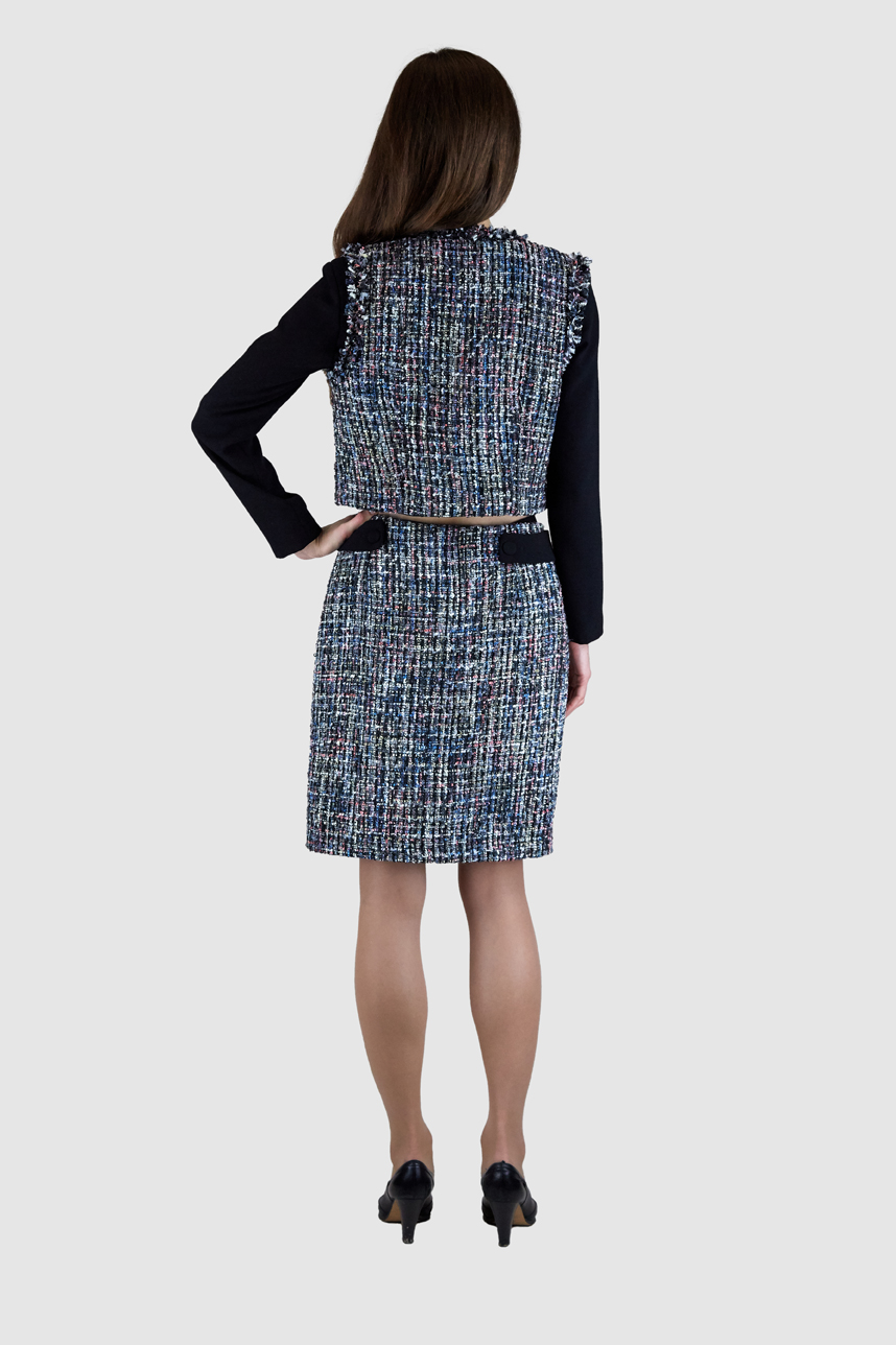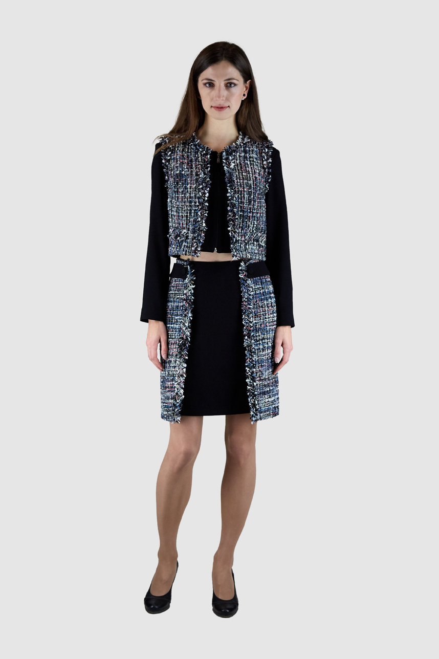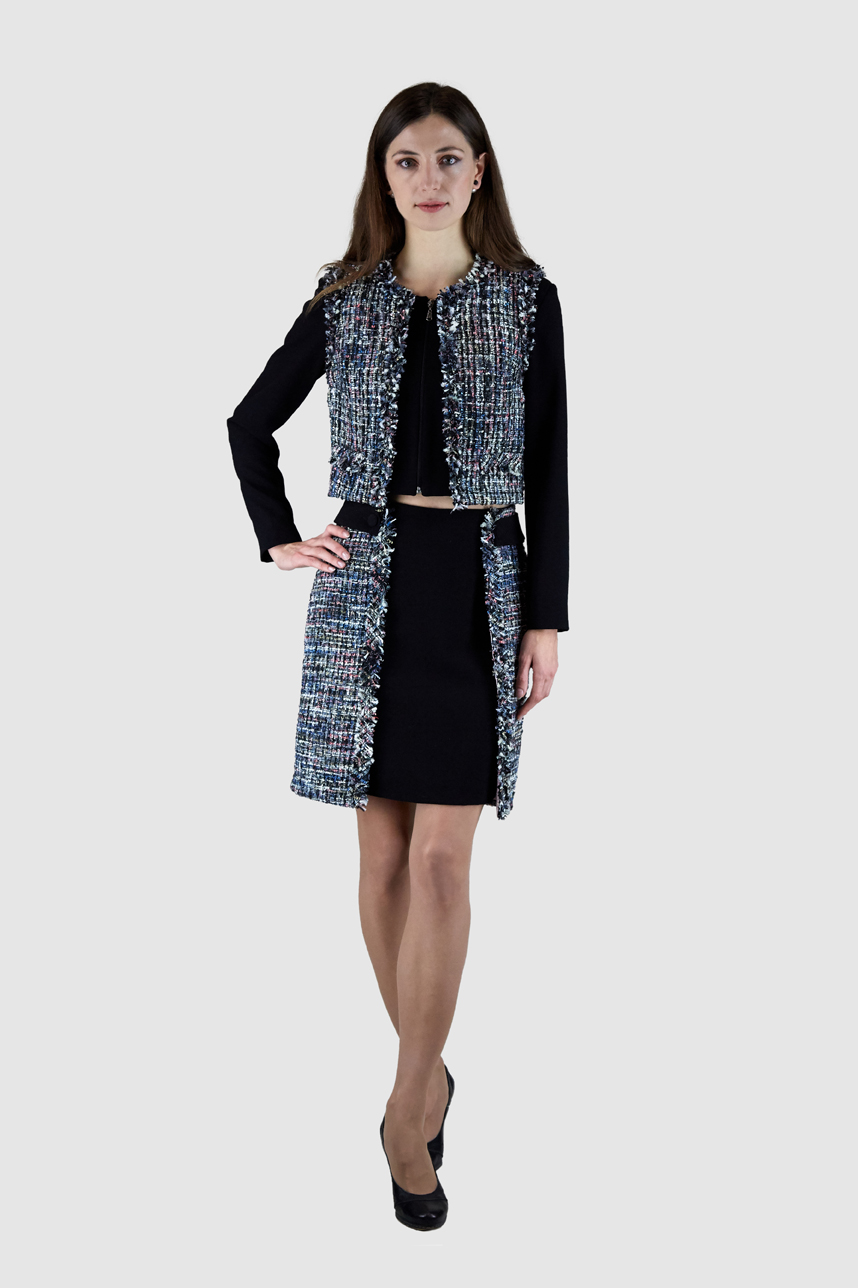 Ensemble veste jupe classique avec une touche tweed fantaisie.