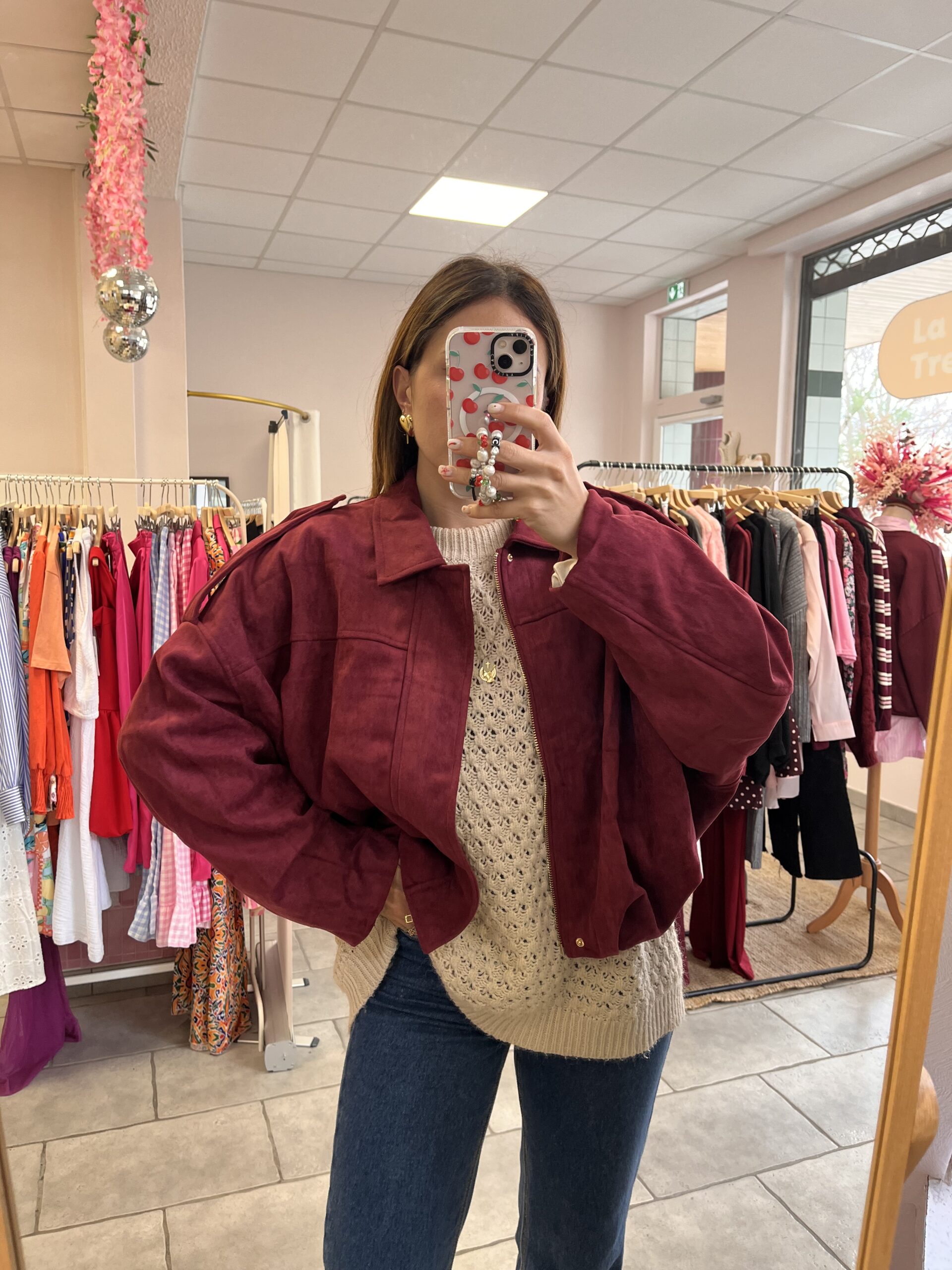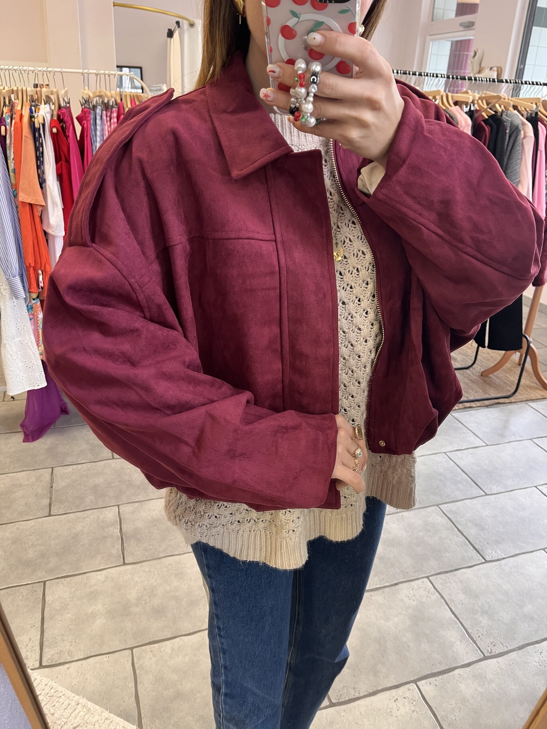 Veste suédine, oversize Bordeaux.